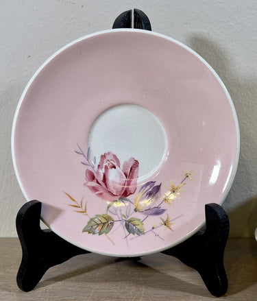 Unterteller / Schale - VEB Deutschland - Dekor mit einer Rose auf rosa Pastellgrund