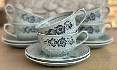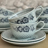 Tasse und Untertasse - Royal Sphinx - Blumendekor auf blau/grauem Hintergrund