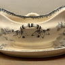 Sauciere / Sauciere auf Fuß - U&Cie (Utzschneider & Cie) Sarreguemines - Dekor GROSEILLES in Blau/Jeansblau mit Abbildung von (Stachel-)Beeren.