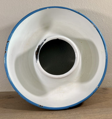Backform – dänisches Emaille? - Außenseite aus blauem Email, Innenseite aus weißem Email (Ø 23,5 cm)