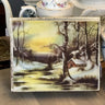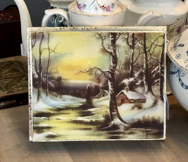 Bonbonschachtel - rechteckig - Karton mit goldfarbenem Rand und Dekor einer Winterlandschaft - Lecocq.