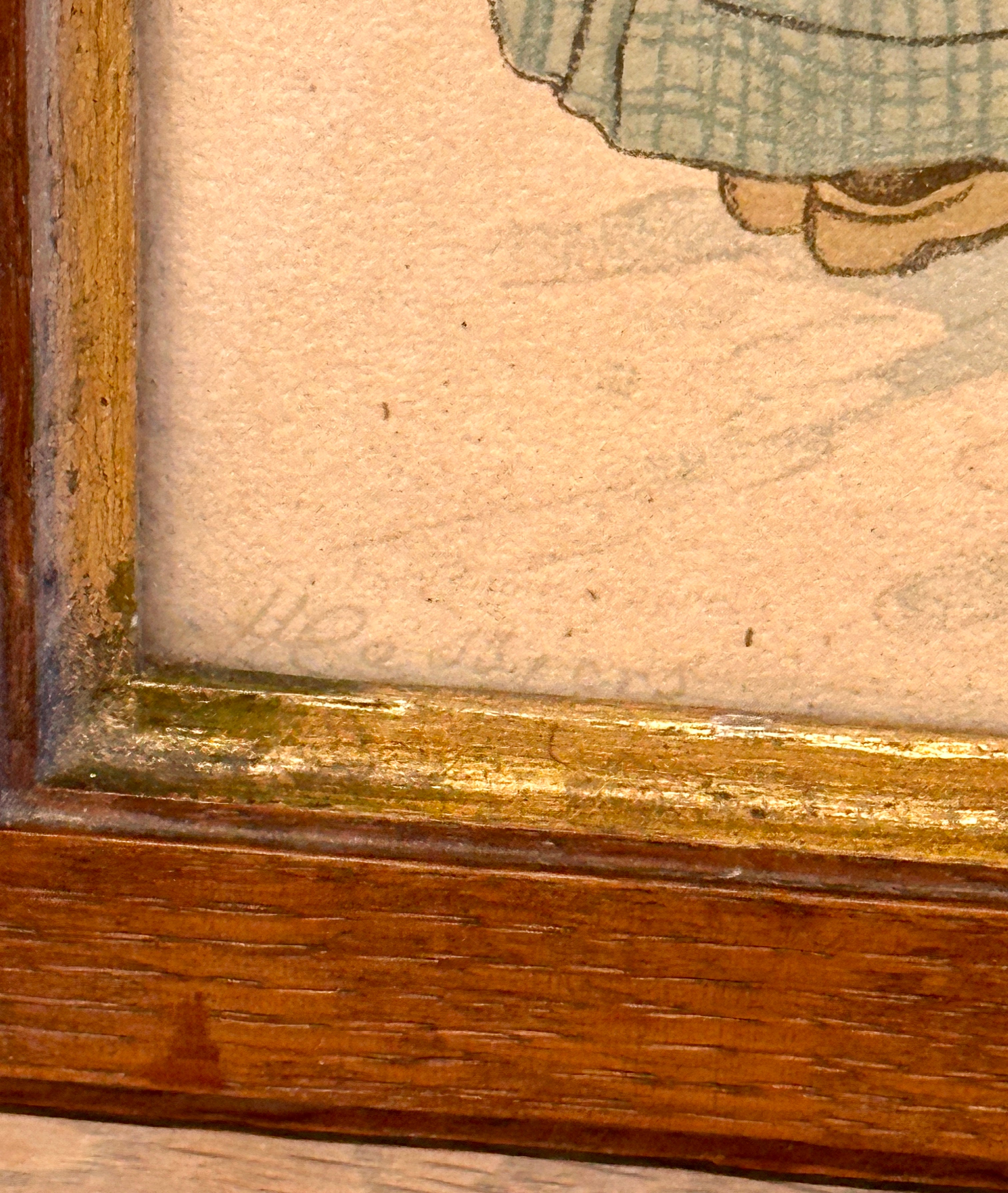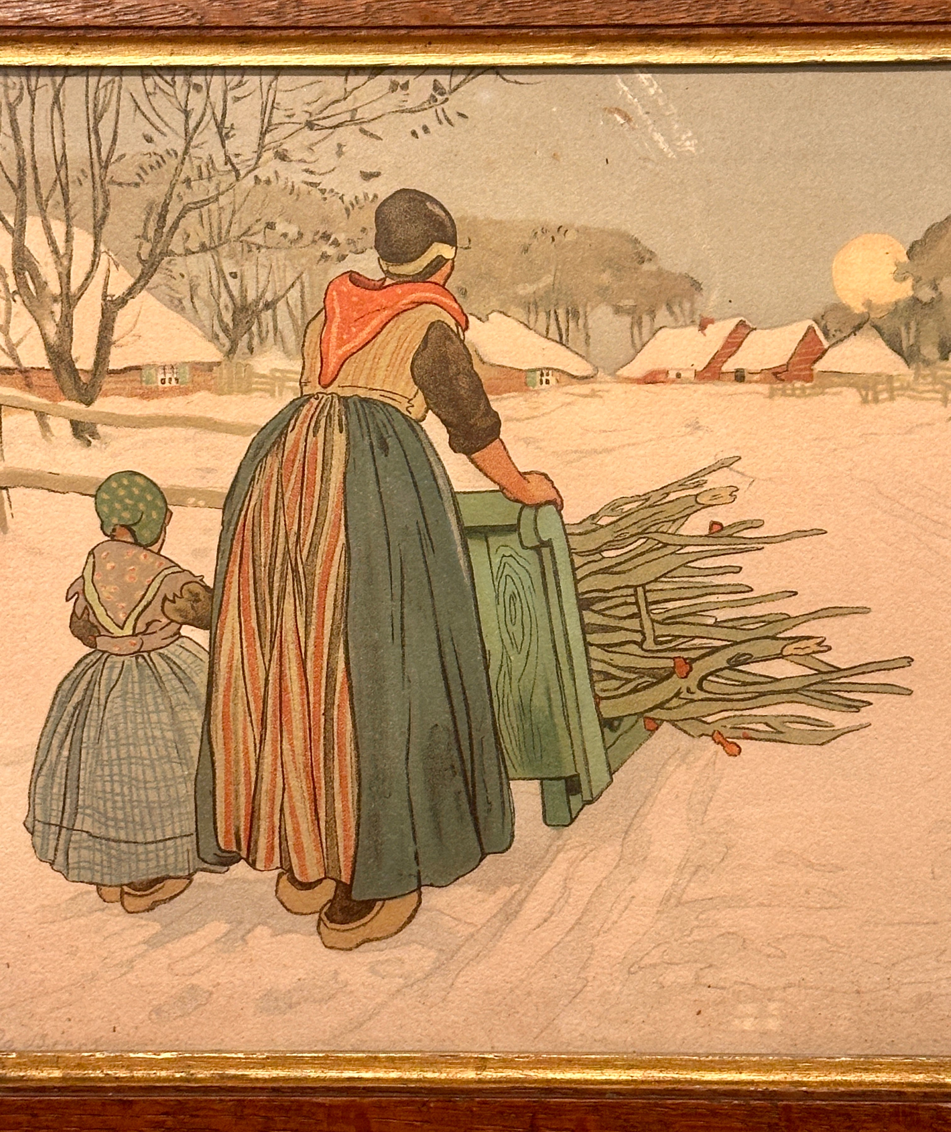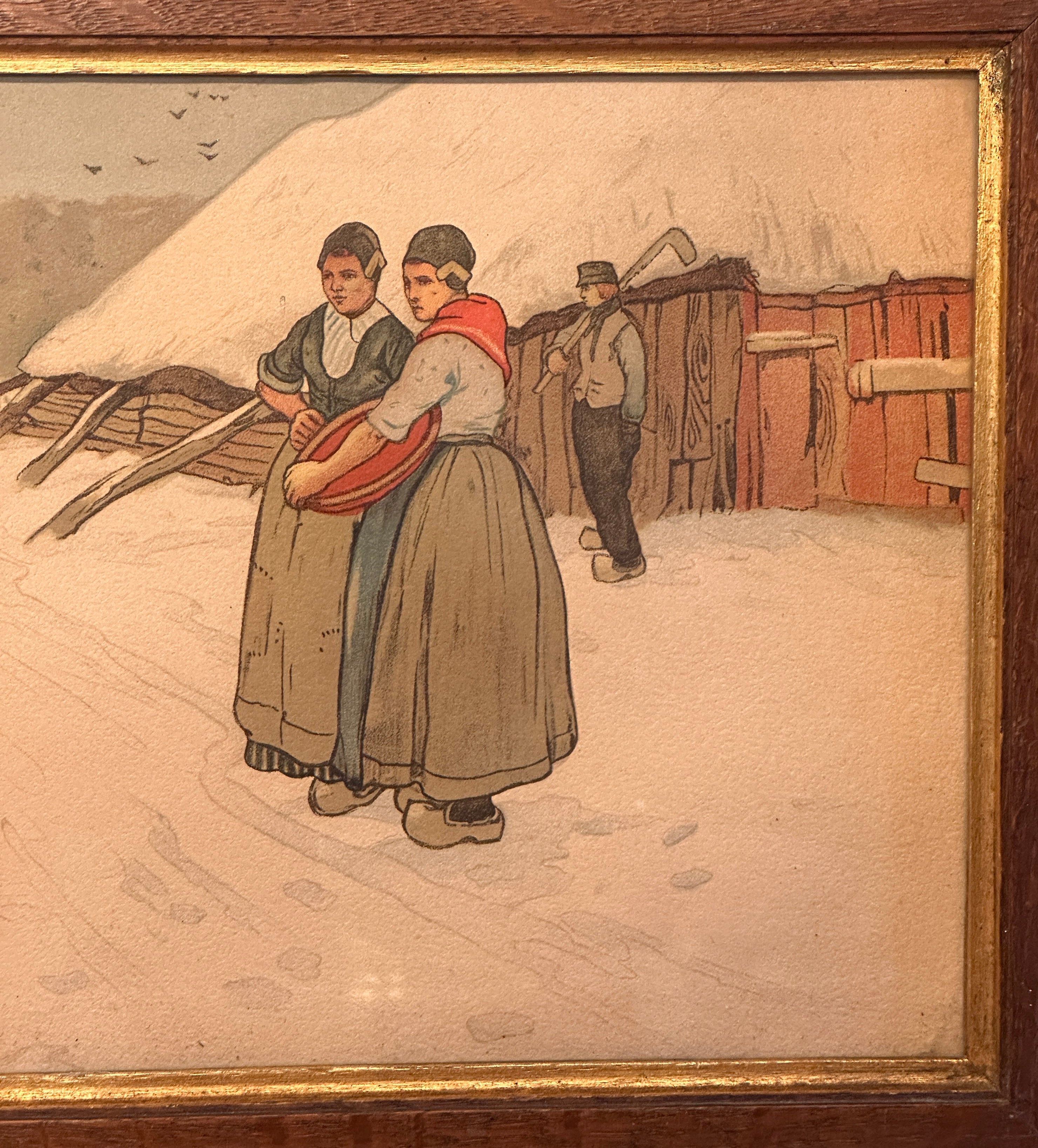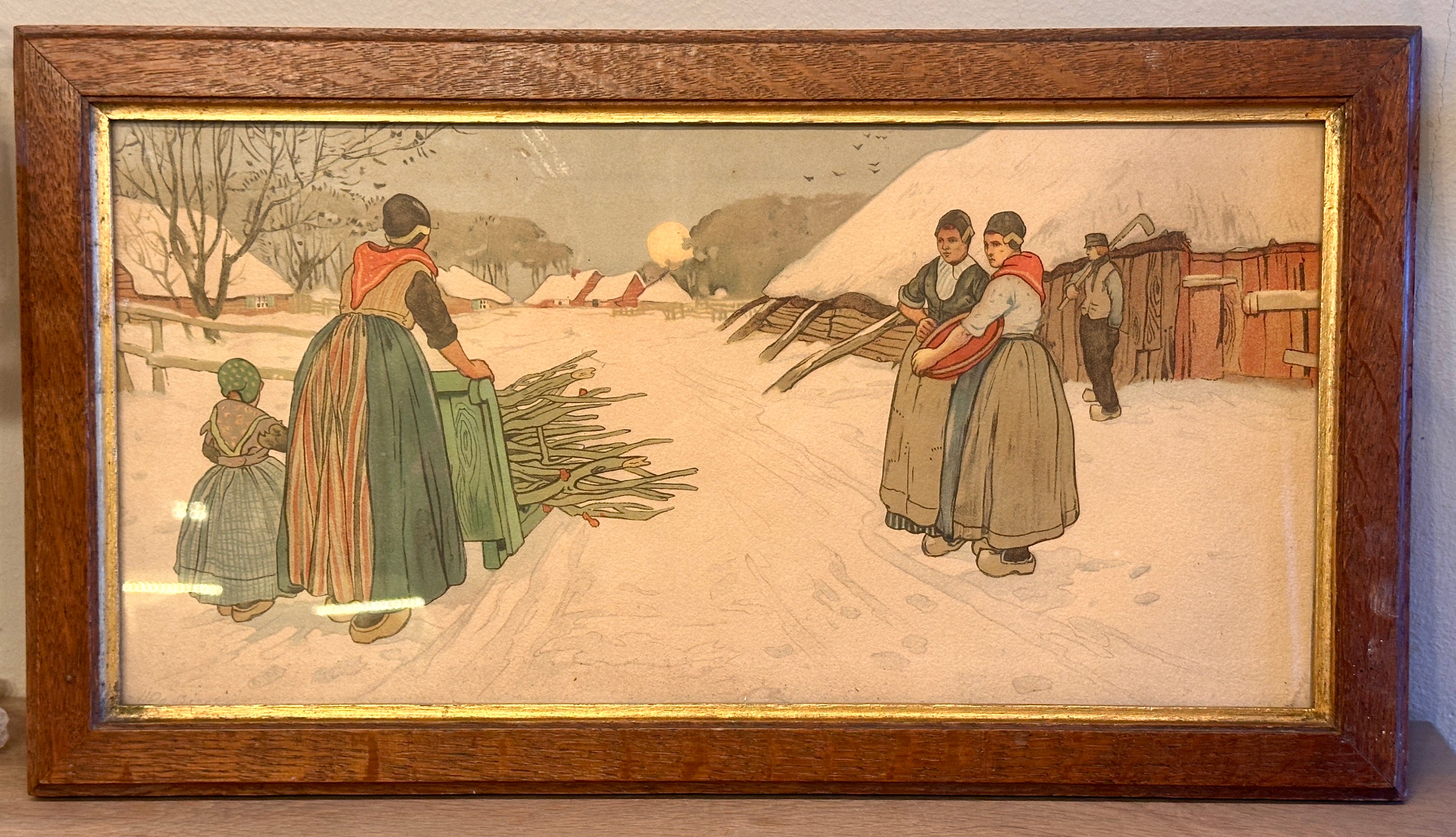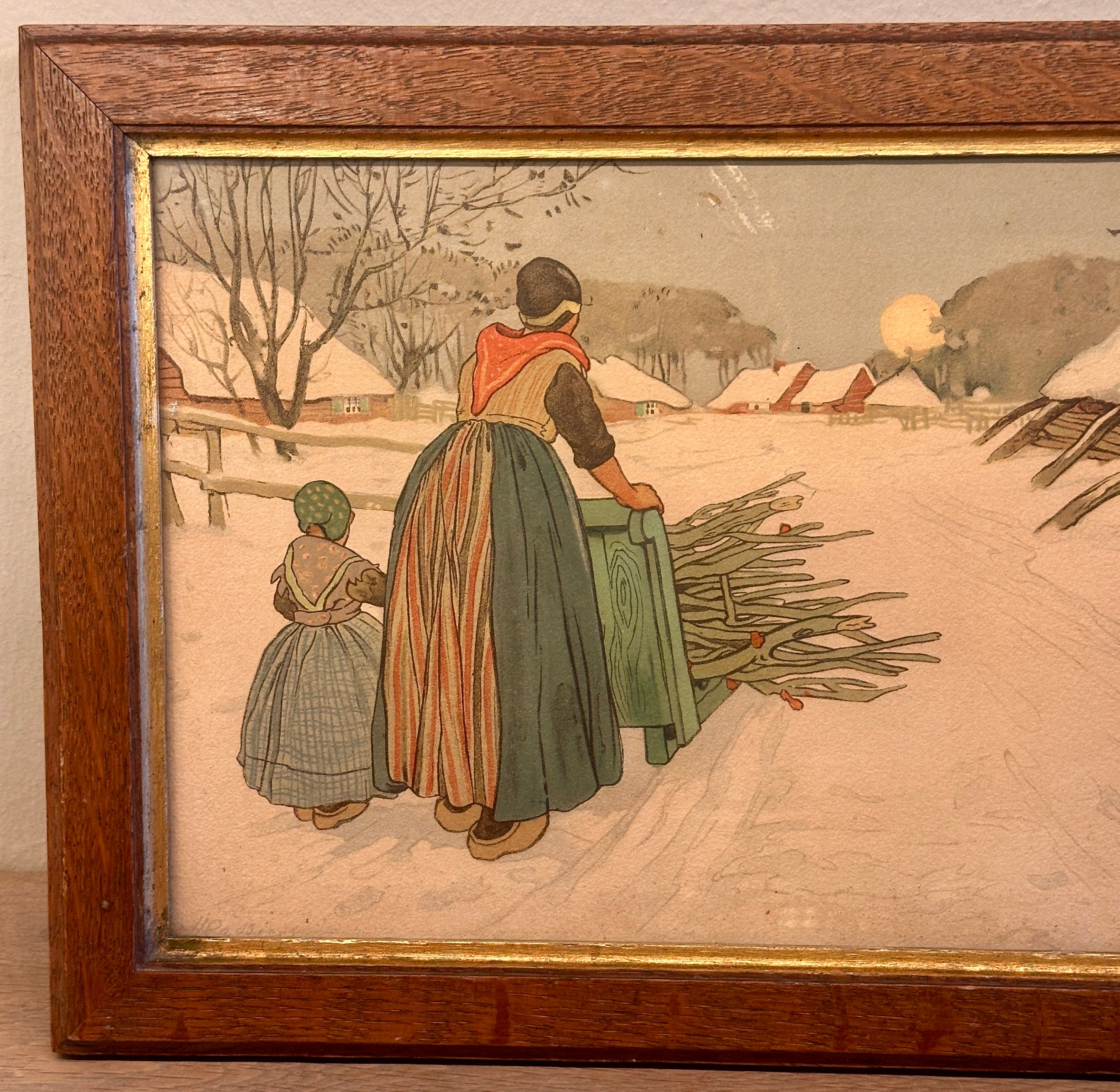 Chromolithografie - Henri Cassiers (1858-1944) - afbeelding van 'Land van Hei en Struiken - Staphorst' - in oude eikenhouten lijst