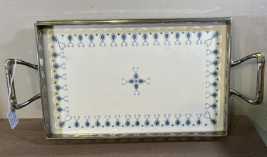 Tablett / Präsentationstablett - Modell auf Beinen und mit Griffen und Metallrand - Art Deco