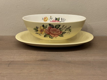 Sauciere / Sauciere - Royal Sphinx - 1963 - Dekor HECKENROSE in gelb mit weißer Innenseite - gelbe und rosa Rose außen.