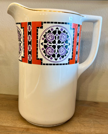 Gießkanne / Wasserkrug - Société Céramique Maestricht - Dekor in Orange, Lila und Schwarz mit Rosen und geometrischen Figuren