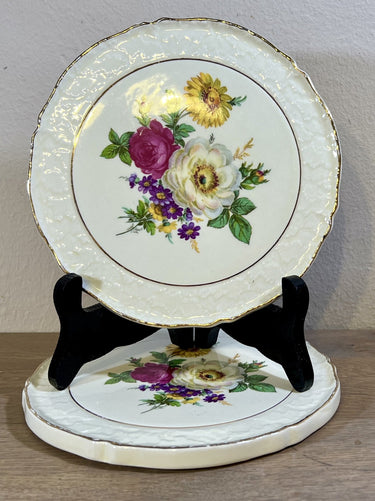 Untersetzer – Ceranord St. Amand – Semi Vitrifié – Breveté SGDG – Dekor aus farbigen Blumen mit goldfarbenem Filetrand im Relief.