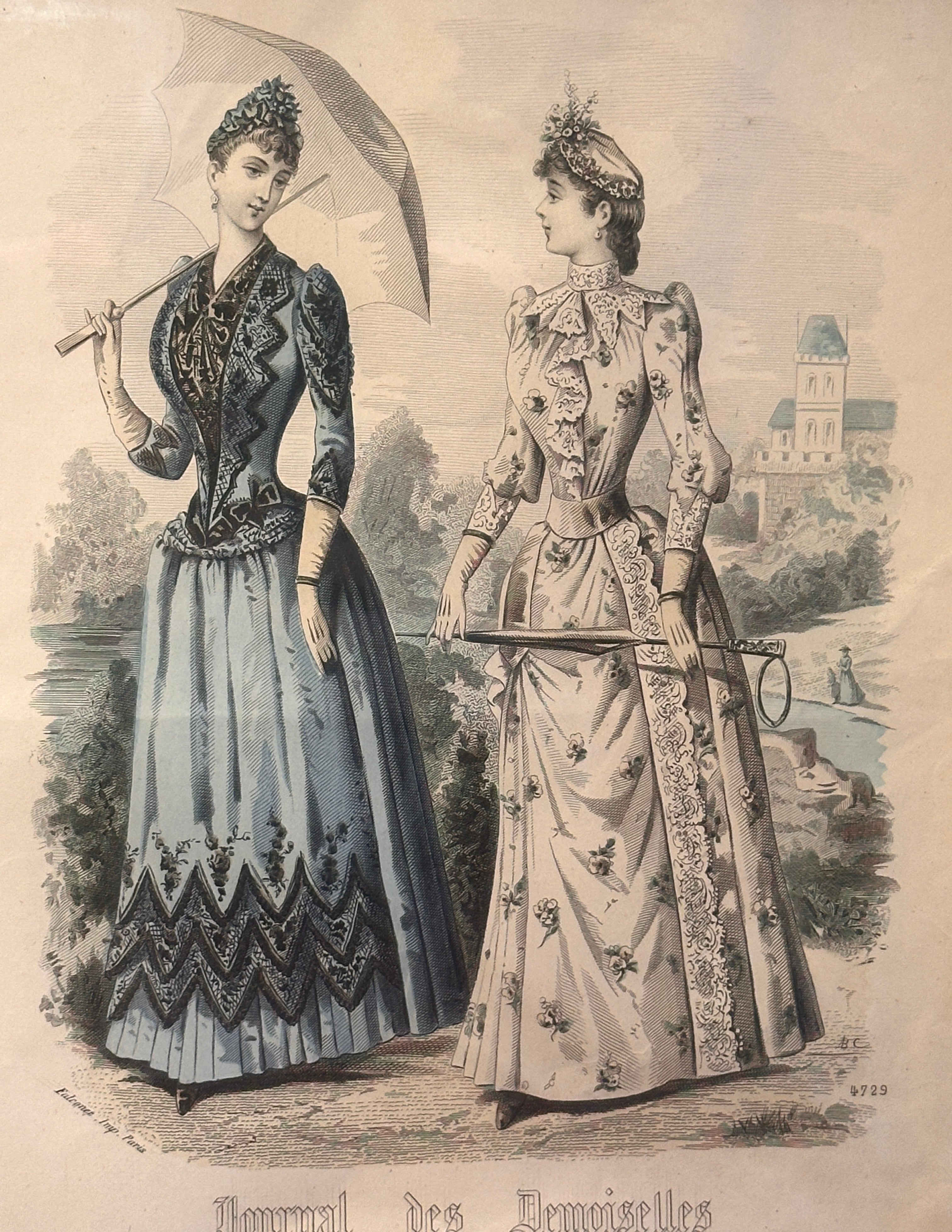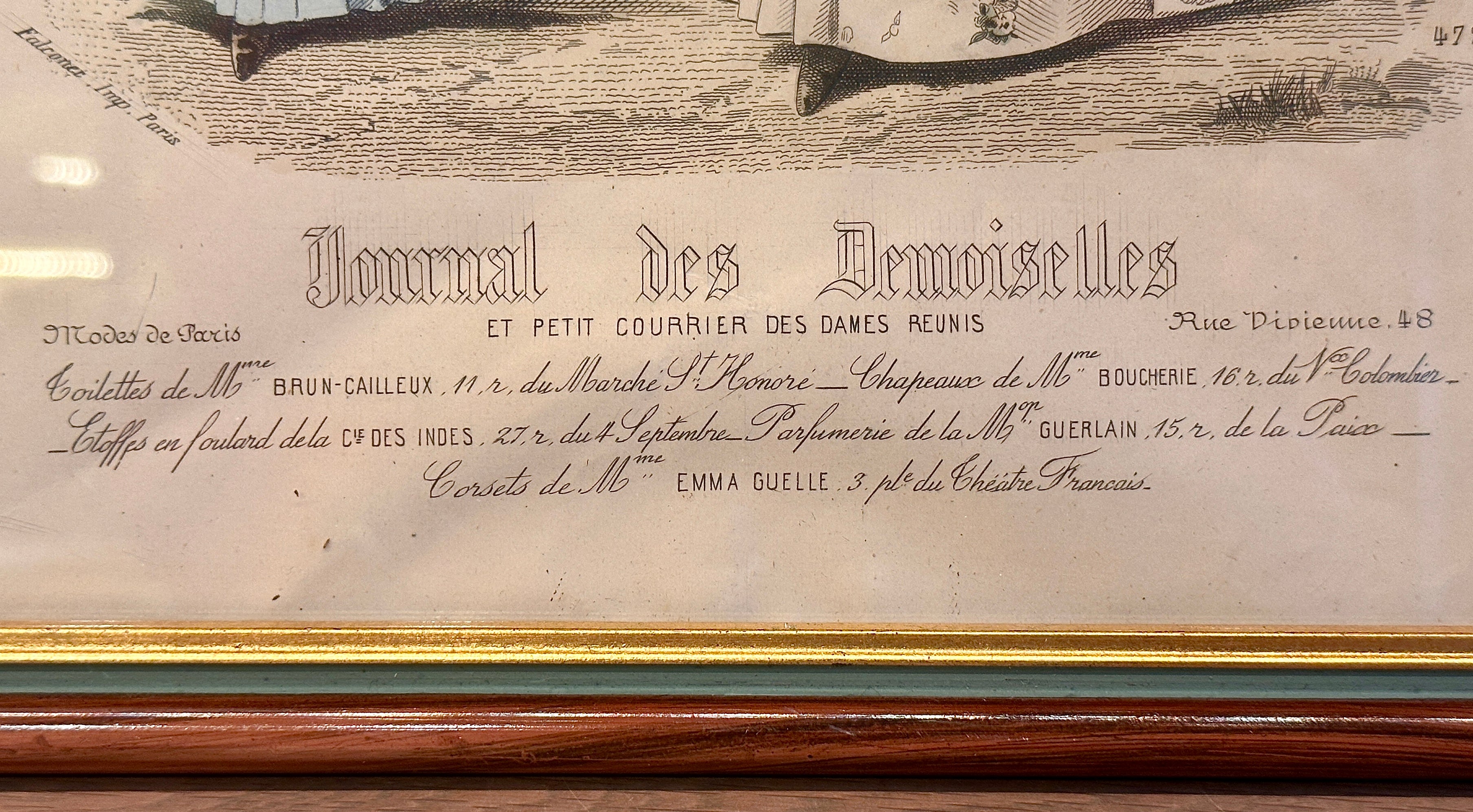 Originele plaat in lijst - Journal des Demoisselles - Modes de Paris, Rue Vivienne 48 - nummer 4729 Falconet Imp. Paris - 2 dames in Victoriaanse jurken