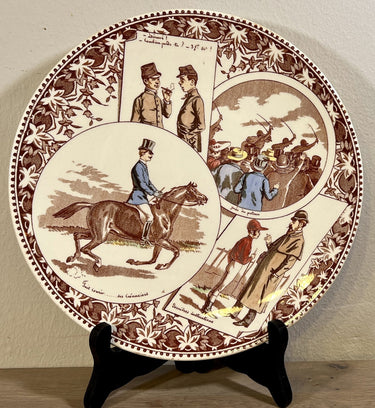 Dekorativer Teller / Teller - Sarreguemines - Dekor mit einem Mann zu Pferd und Zuschauern