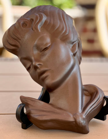 Wandbehang / Wandmaske in Form eines Frauenkopfes - dunkelbraun matt glasiert