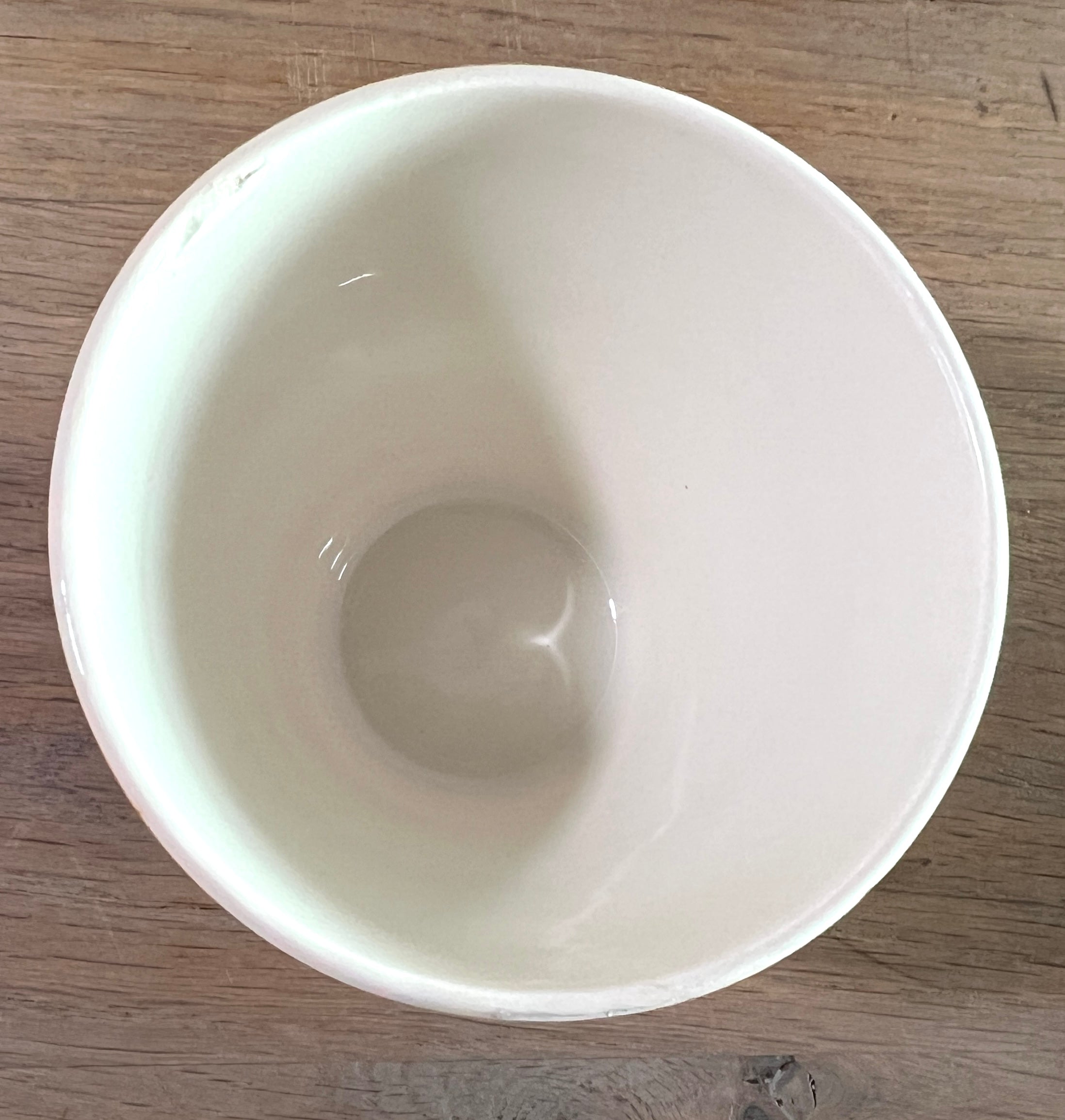 In good condition with a dent/damage on the inside of the top edge.