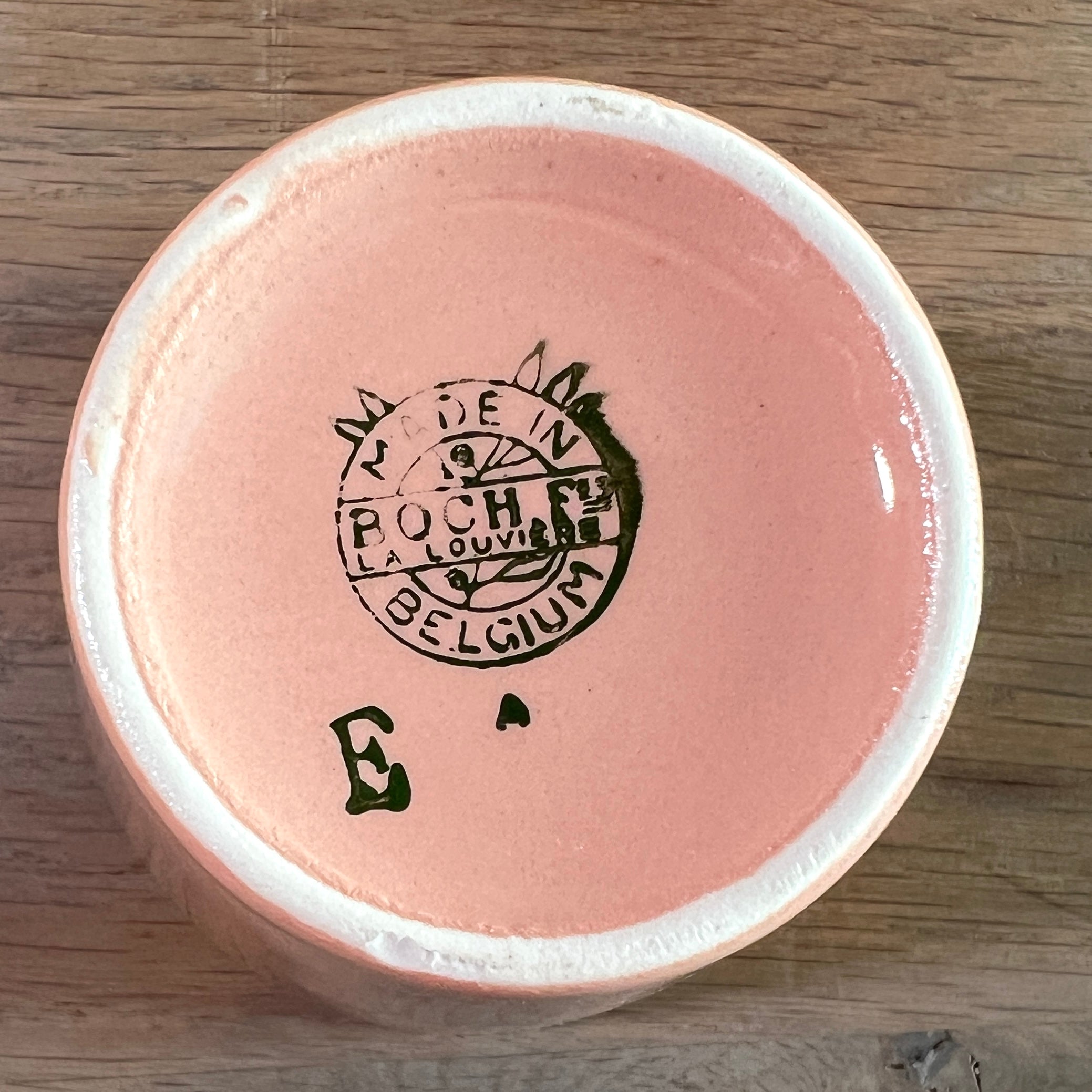 Milk cup / Mug - Boch - salmon pink decor with cream interior