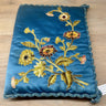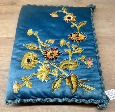 Lingerie cover / Handkerchief cover - deep azure blue silk with embroidered flowers.