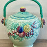 Biscuit jar with wicker/plastic handle - AJ Wilkingson / Royal Staffordshire Pottery - made in the shape of a fruit man