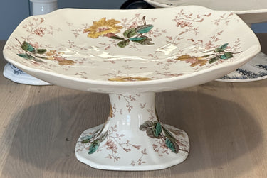 Tazza / Bowl on medium high foot - not marked but Luneville - decoration of flowers in ochre, pink and green.