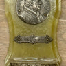 Holy water font - green plastic with a metal plate/image of Pope Pius XI