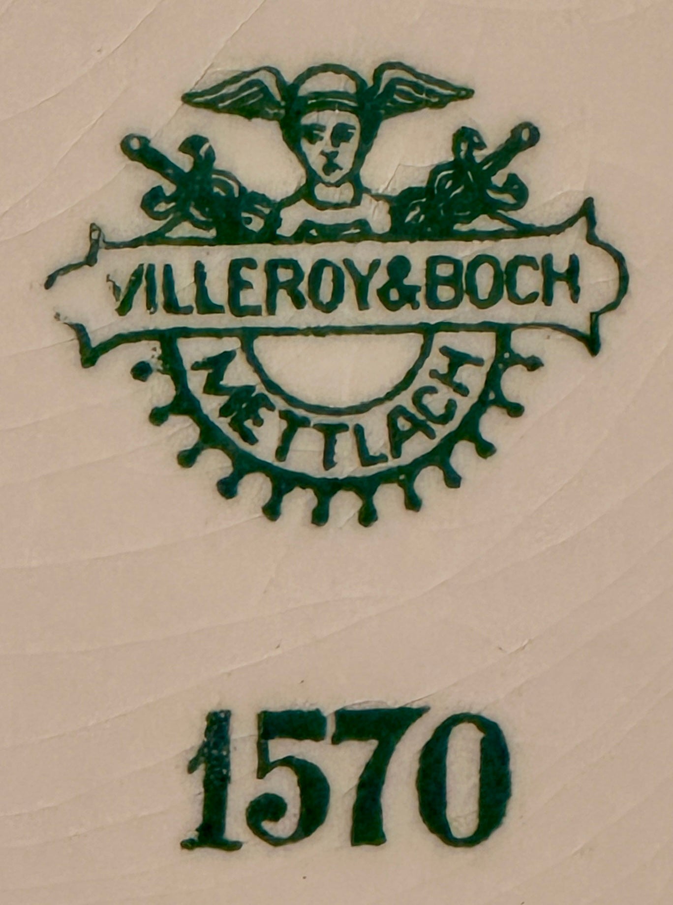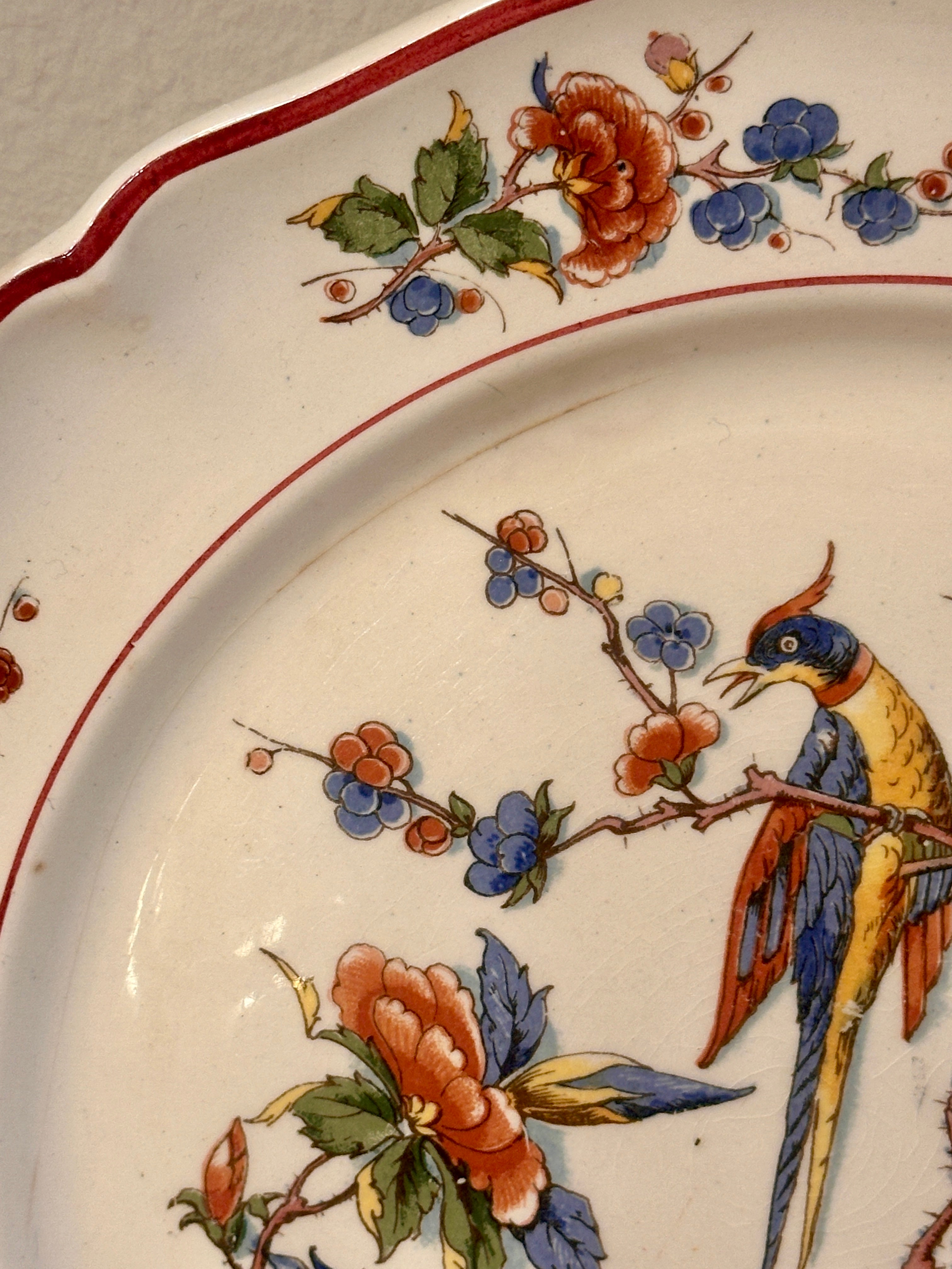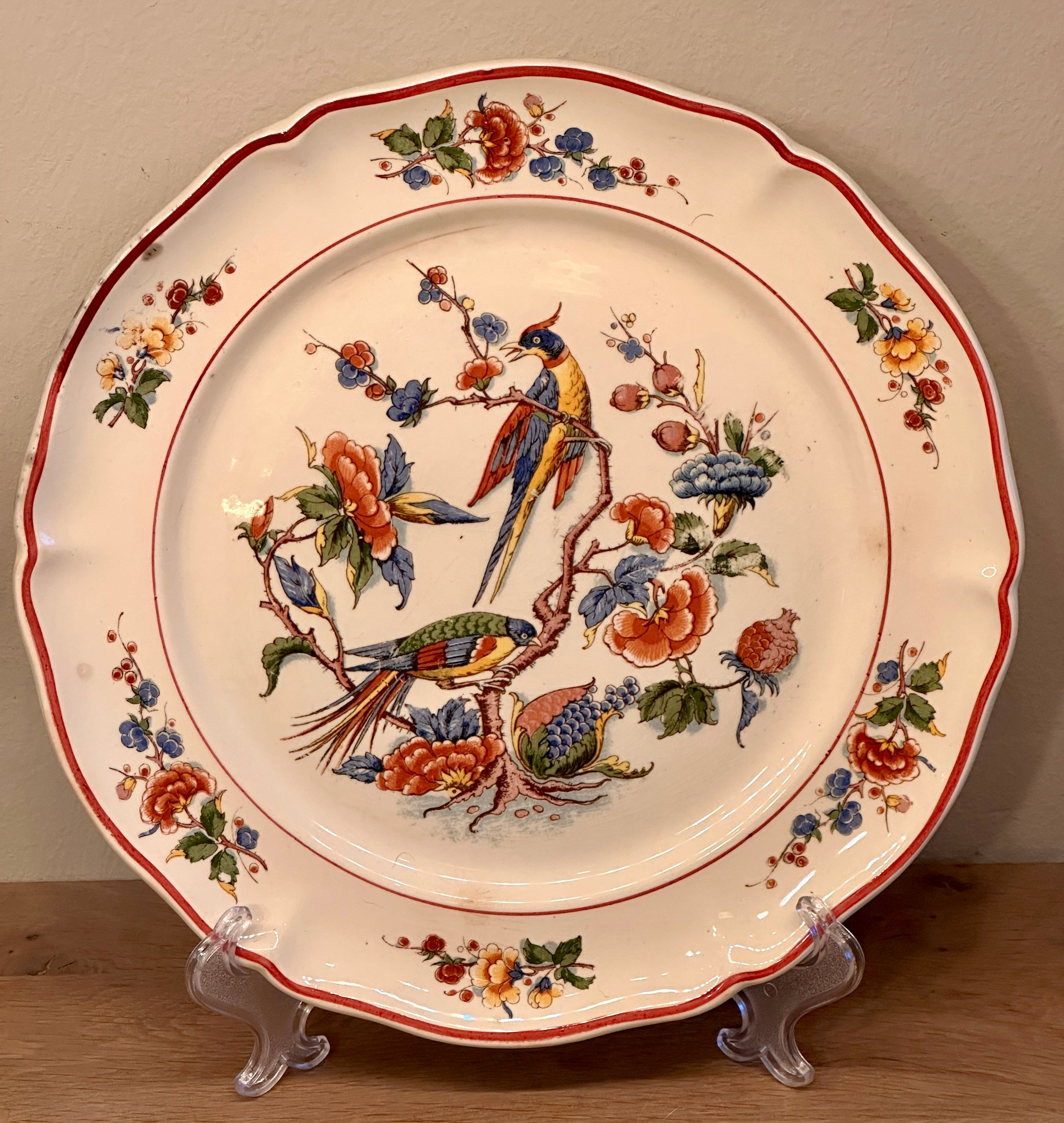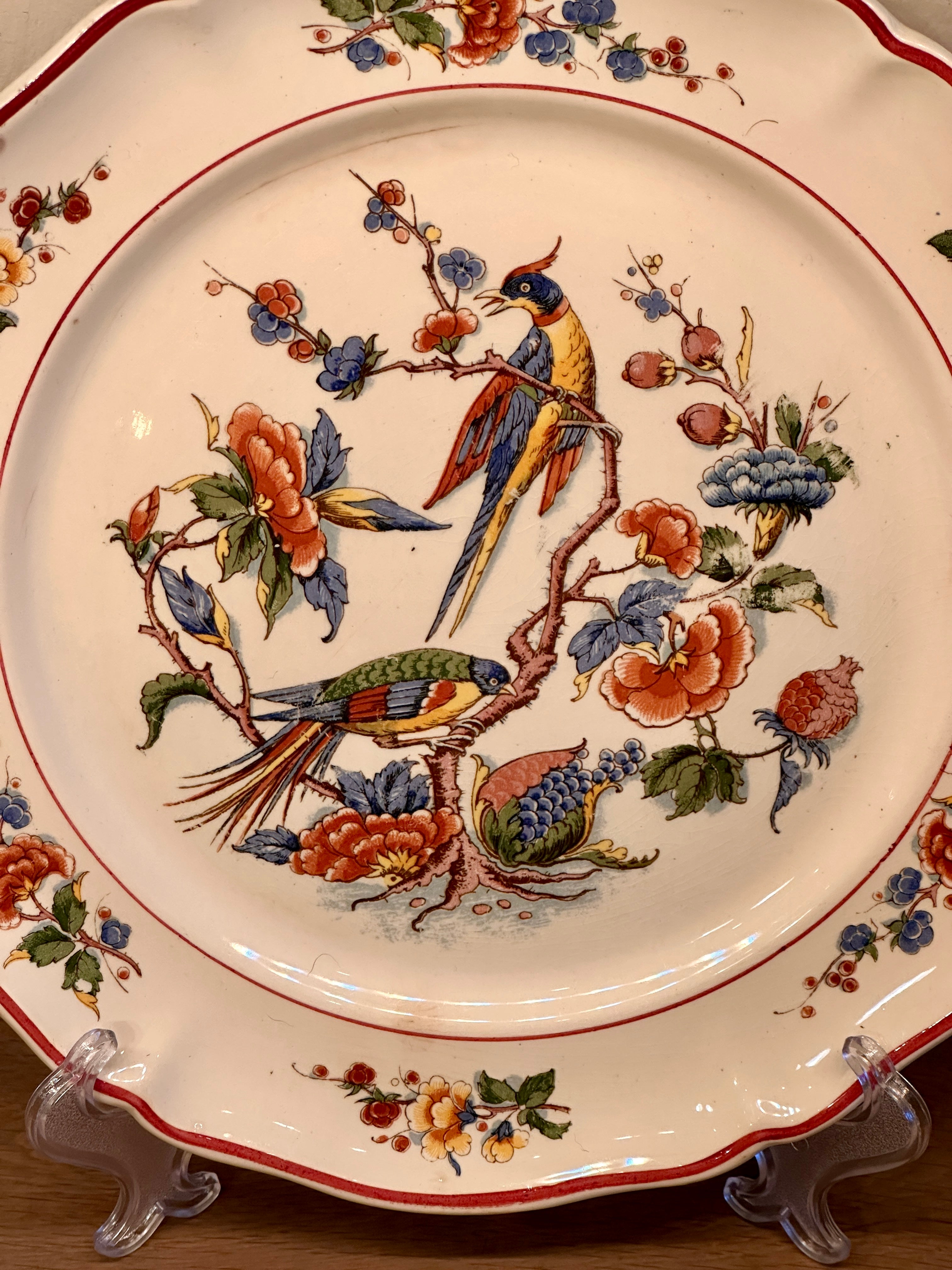 Bord / Sierbord - Villeroy & Boch Mettlach - décor PHOENIX van paradijsvogels - decornr. 1570 - uitgevoerd in rood, blauw, geel en groen met rode filetrand op geschulpte rand