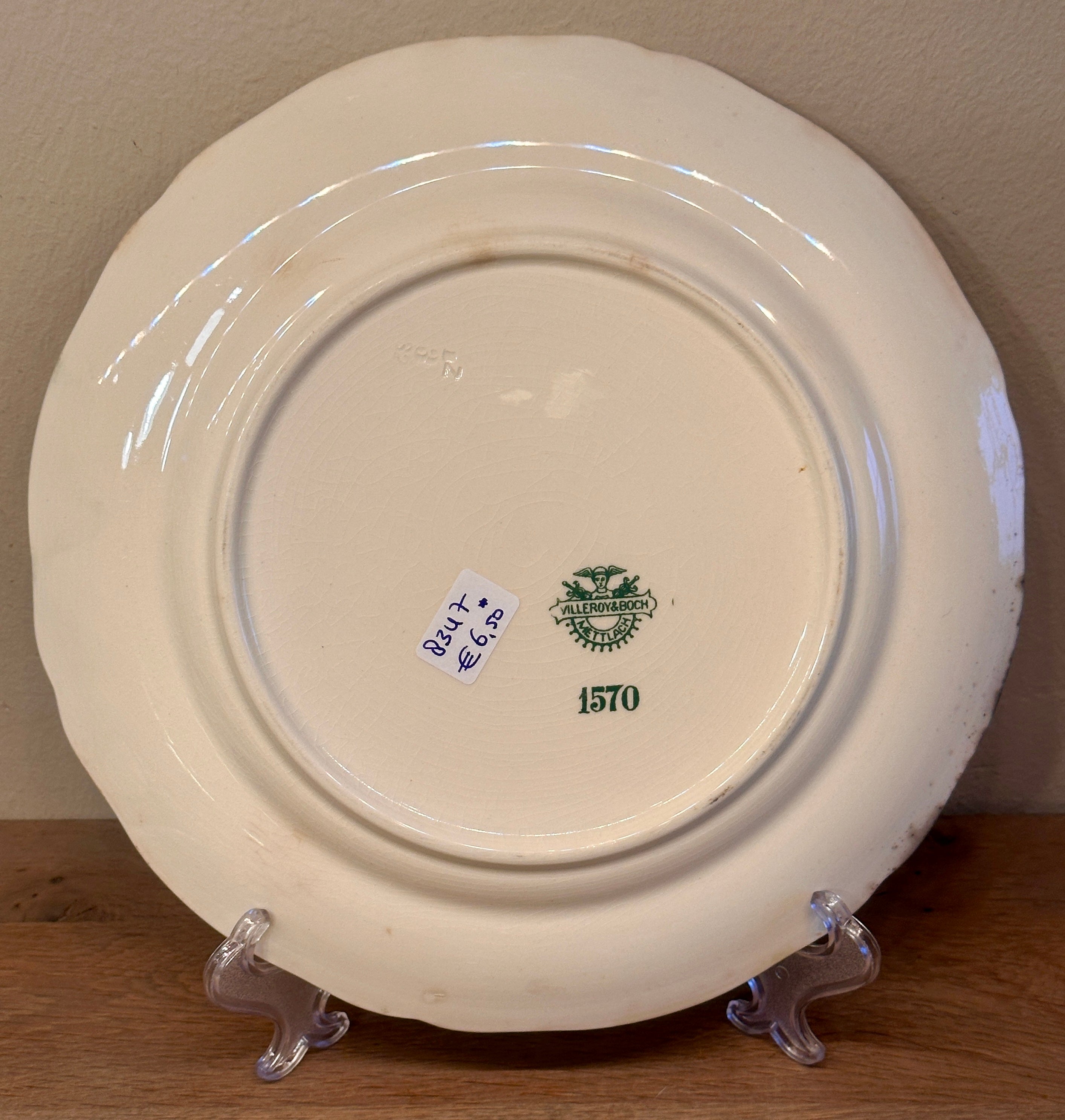 Bord / Sierbord - Villeroy & Boch Mettlach - décor PHOENIX van paradijsvogels - decornr. 1570 - uitgevoerd in rood, blauw, geel en groen met rode filetrand op geschulpte rand - tussen 1966-1992 gemaakt