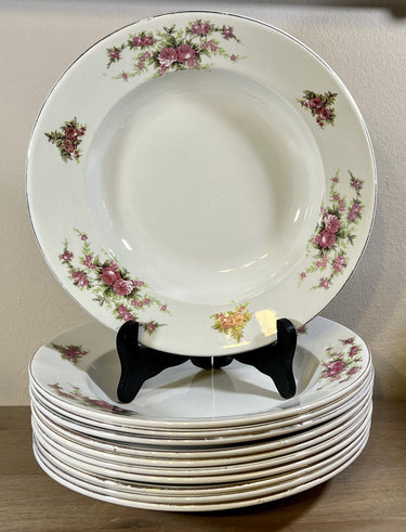 Deep plate / Soup plate / Pasta plate - Badonviller France - decoration of double rose with gold edge.