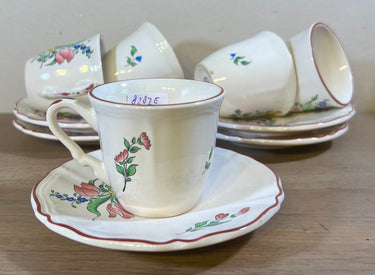 Cup and saucer - small model - K&G Luneville - OLD STRASBOURG decor - REVERBÈRE with flowers in various colors