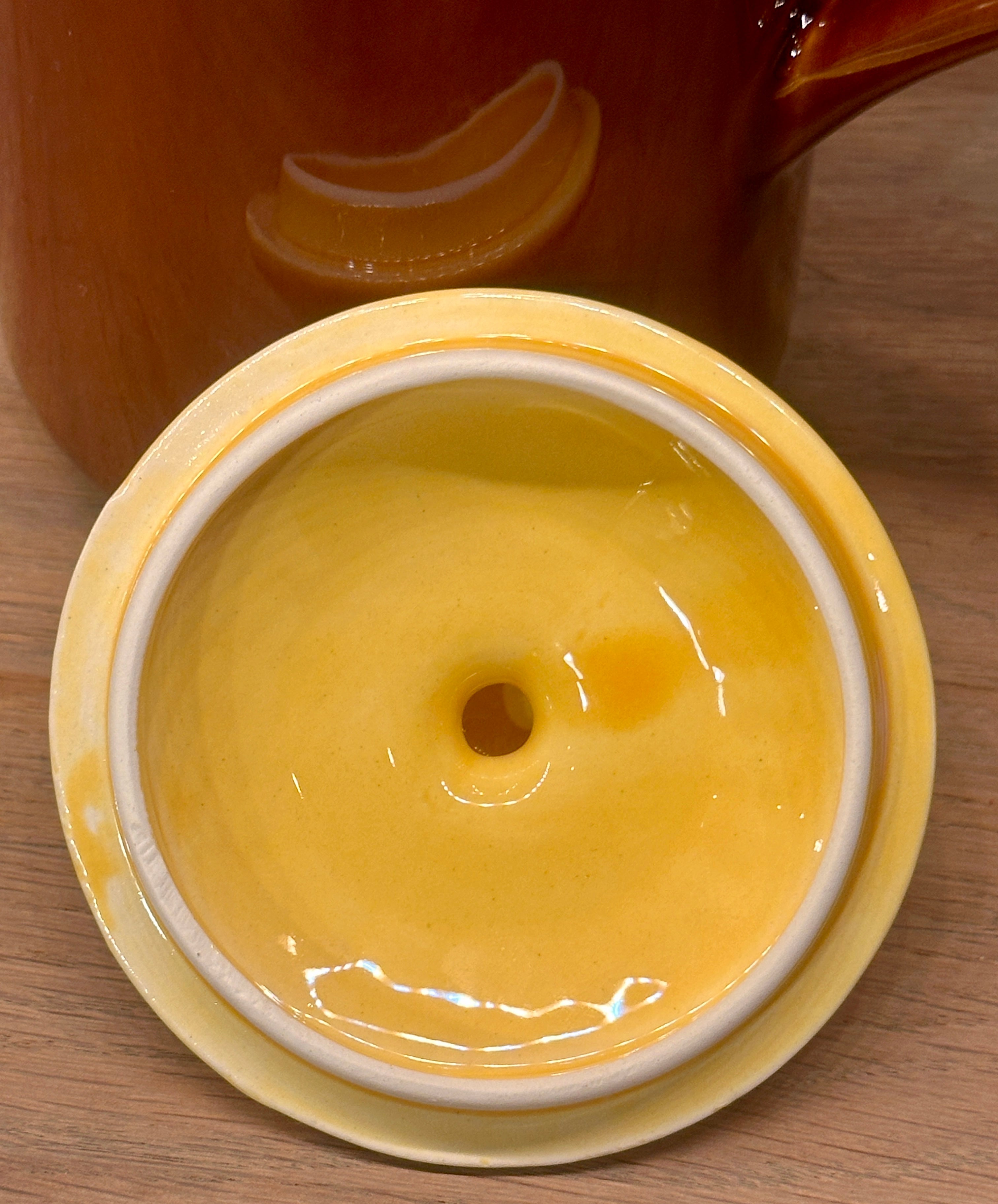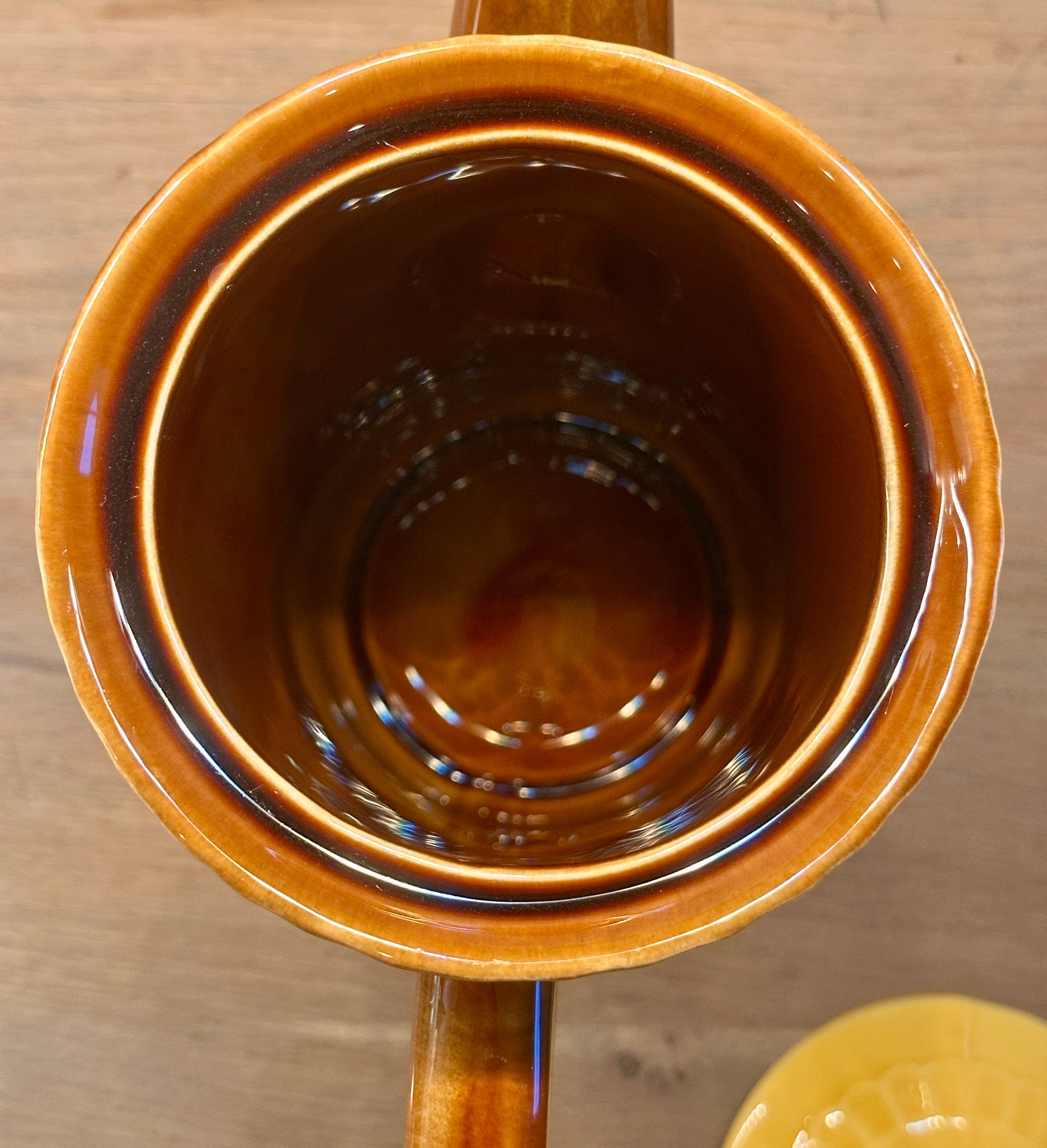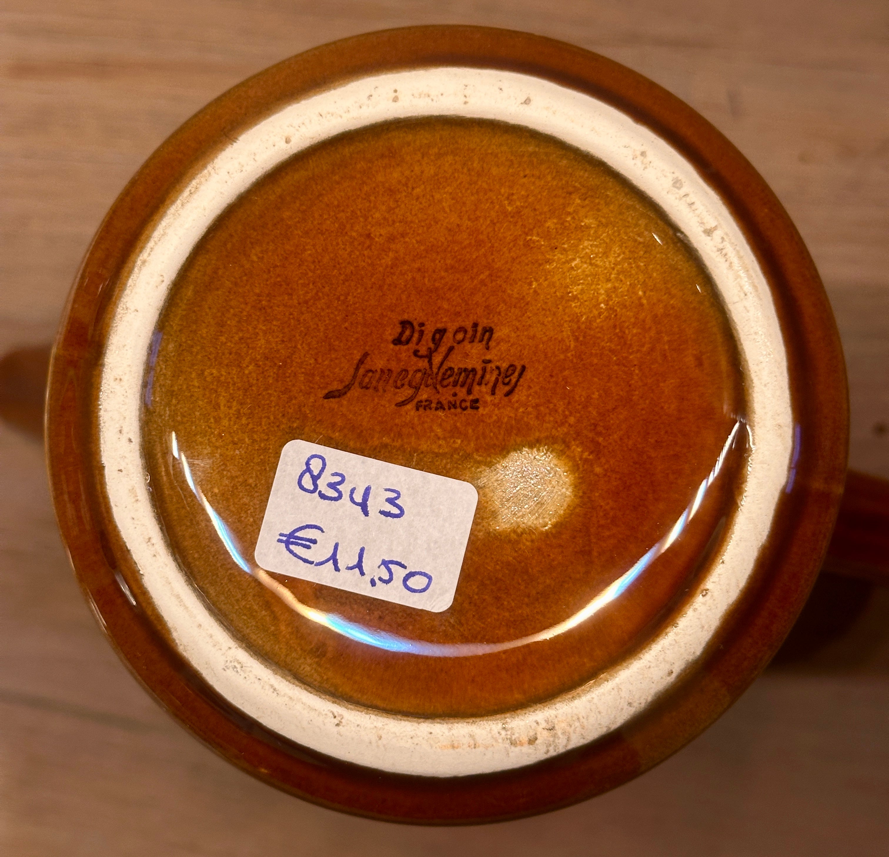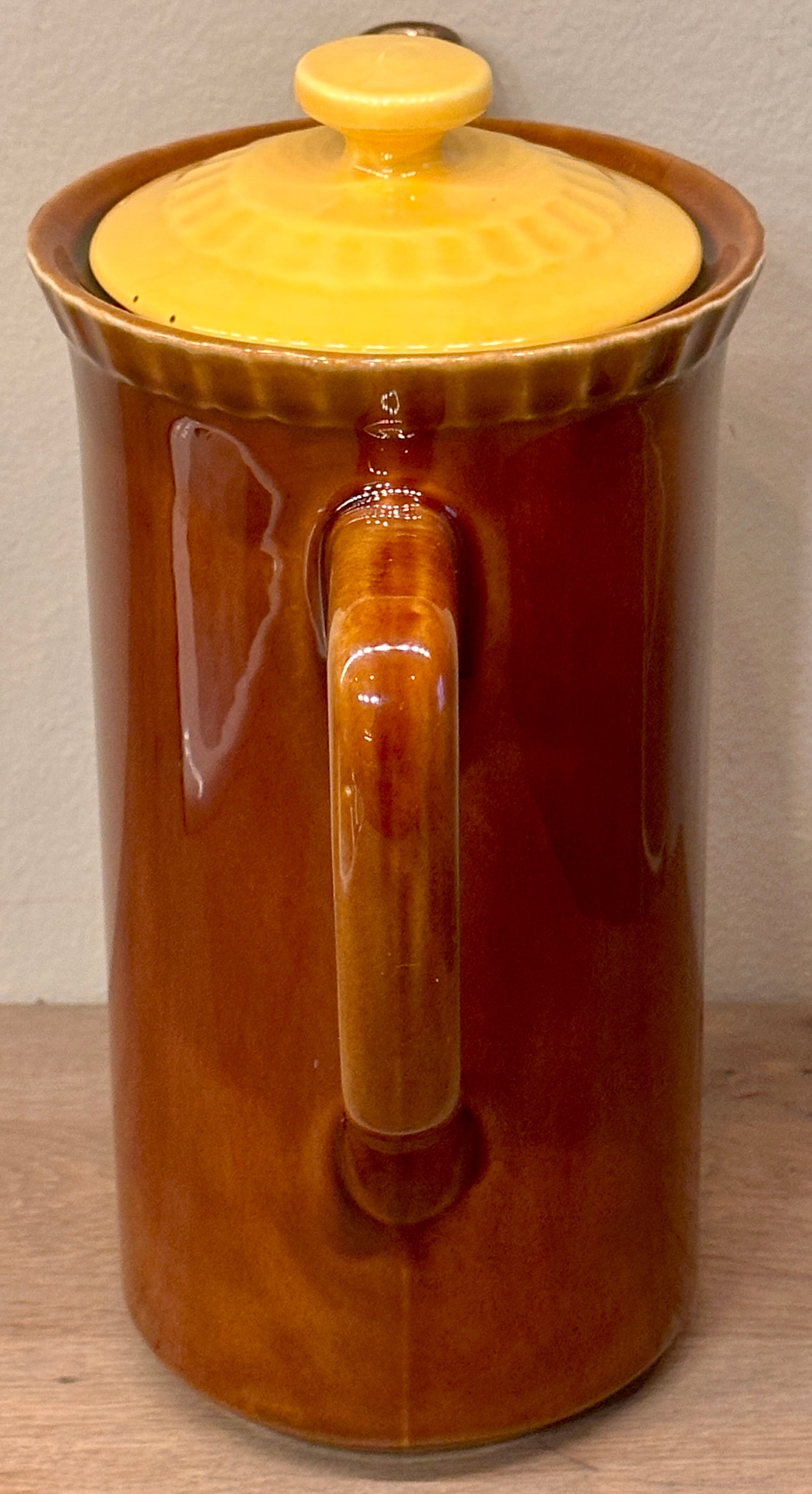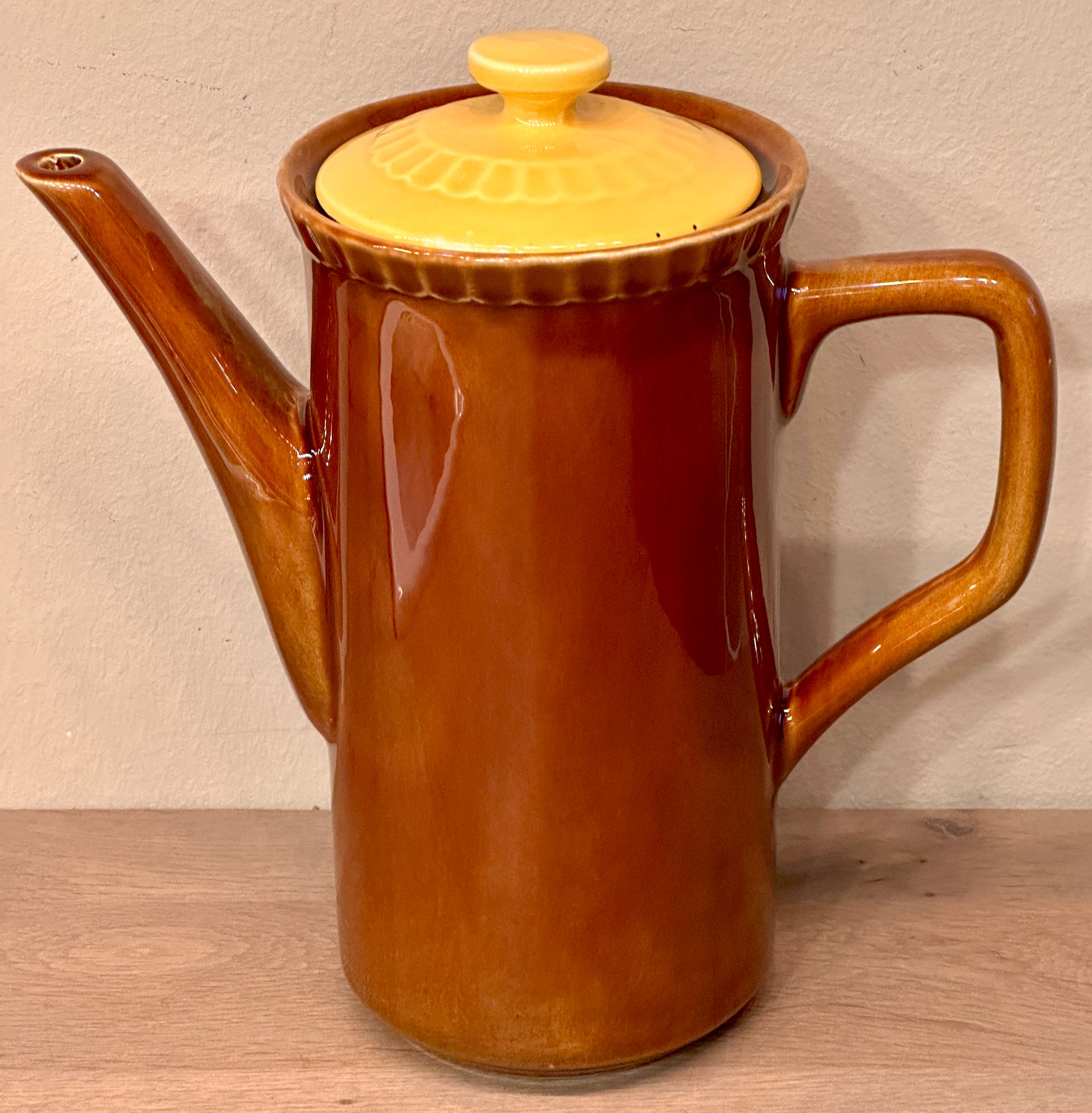 Koffiepot / Theepot - Digoin Sarreguemines France - uitgevoerd in bruin met een gele binnenzijde en reliëfrand