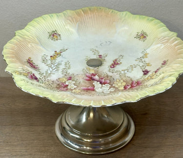 Presentation dish / Cookie dish - W&R (Wiltshaw&Robinson) - matt floral decor and gold-coloured rim - base by EPNS - Reg.Nr. 488460 is ca. 1906.