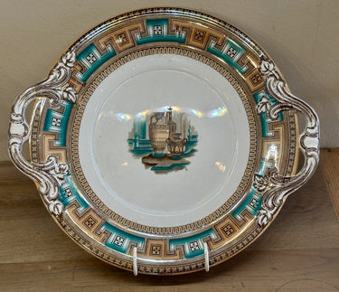 Bowl / Sub-bowl - with ears/handles - marked with image of man on horse - decor ETRUSCAN with green/brown luster.