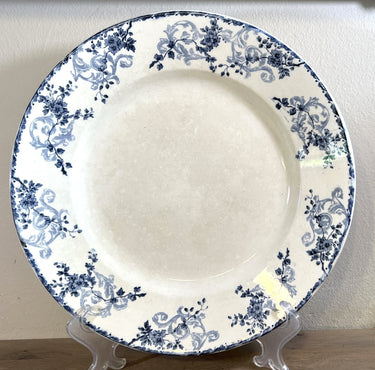 Bowl / Tray - large round model - Longwy - denim blue edge with a decoration of flowers and garlands