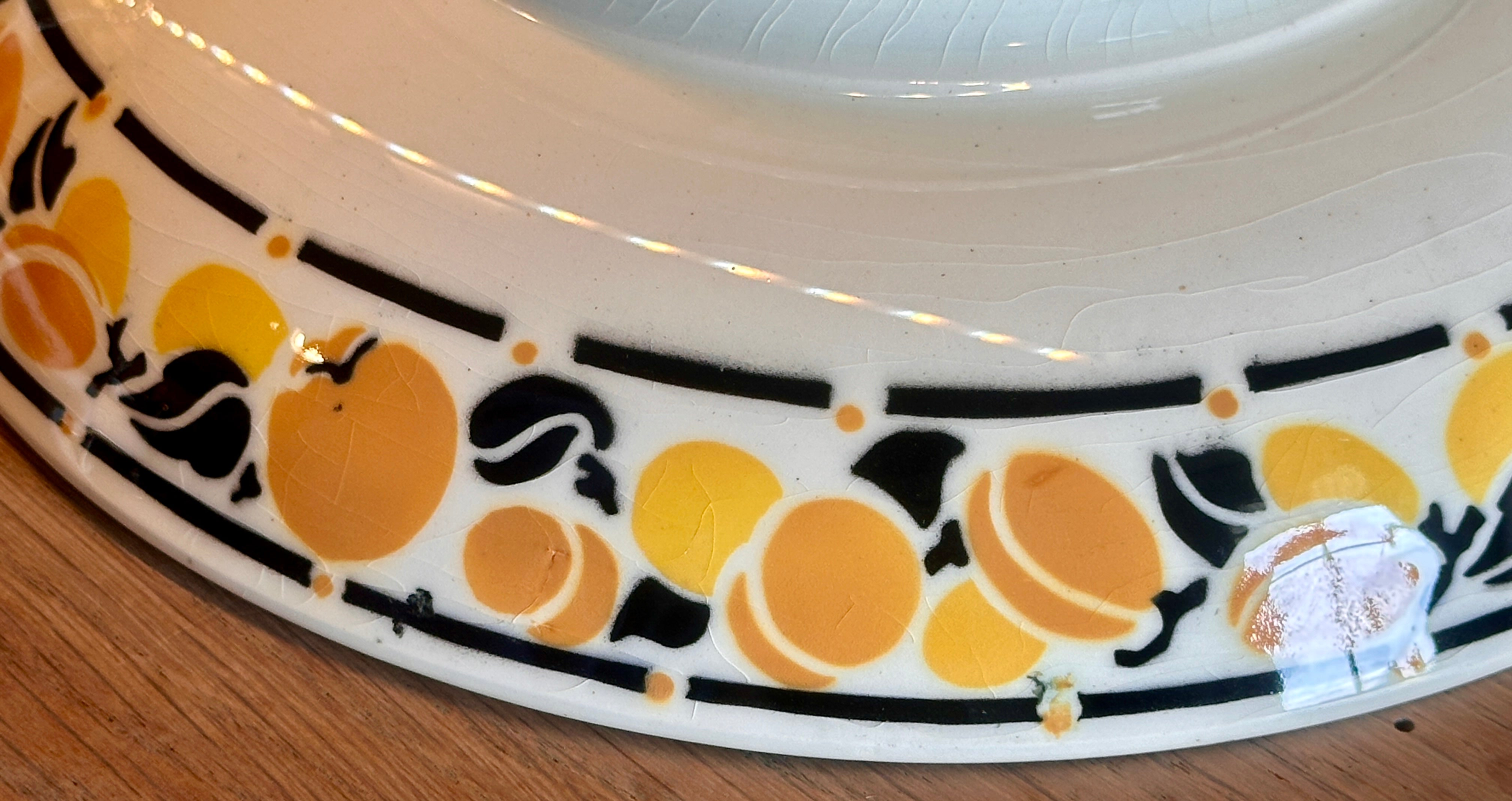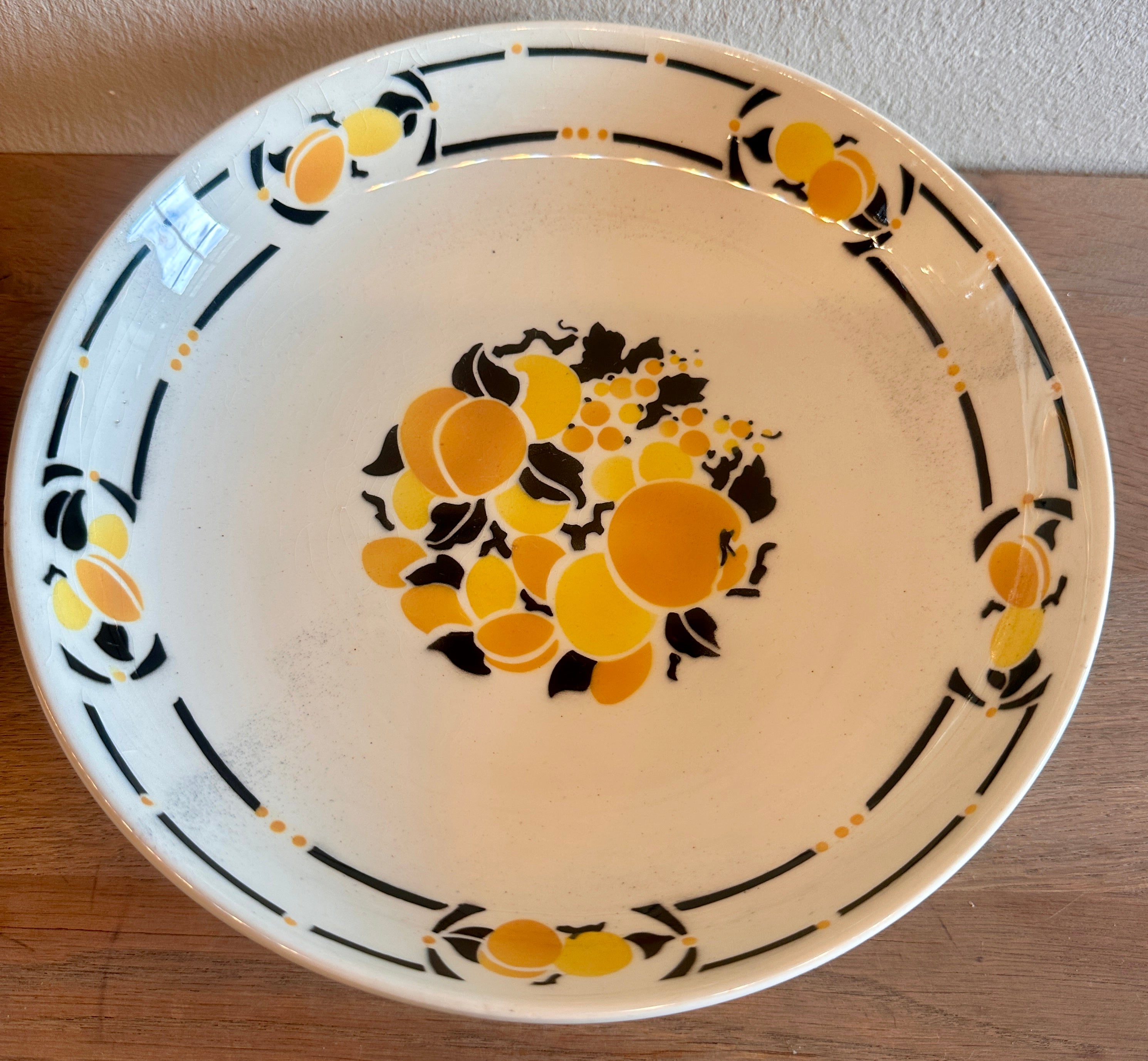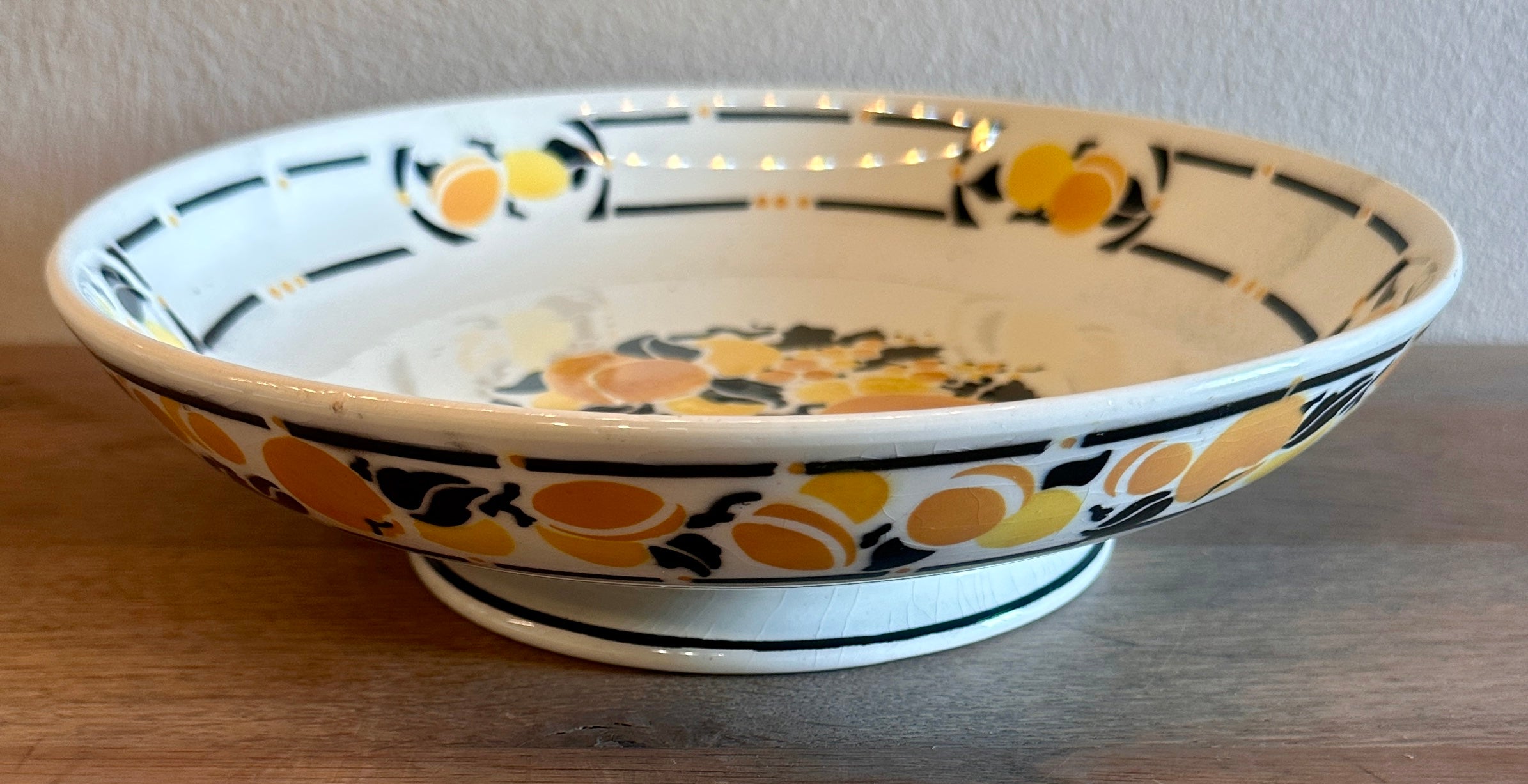 Serving dish / Presentation dish - on low foot - Keramis (Belgium) - CALVILLE decor after a design by Marcel Goupy - Art Deco 1920s-1930s