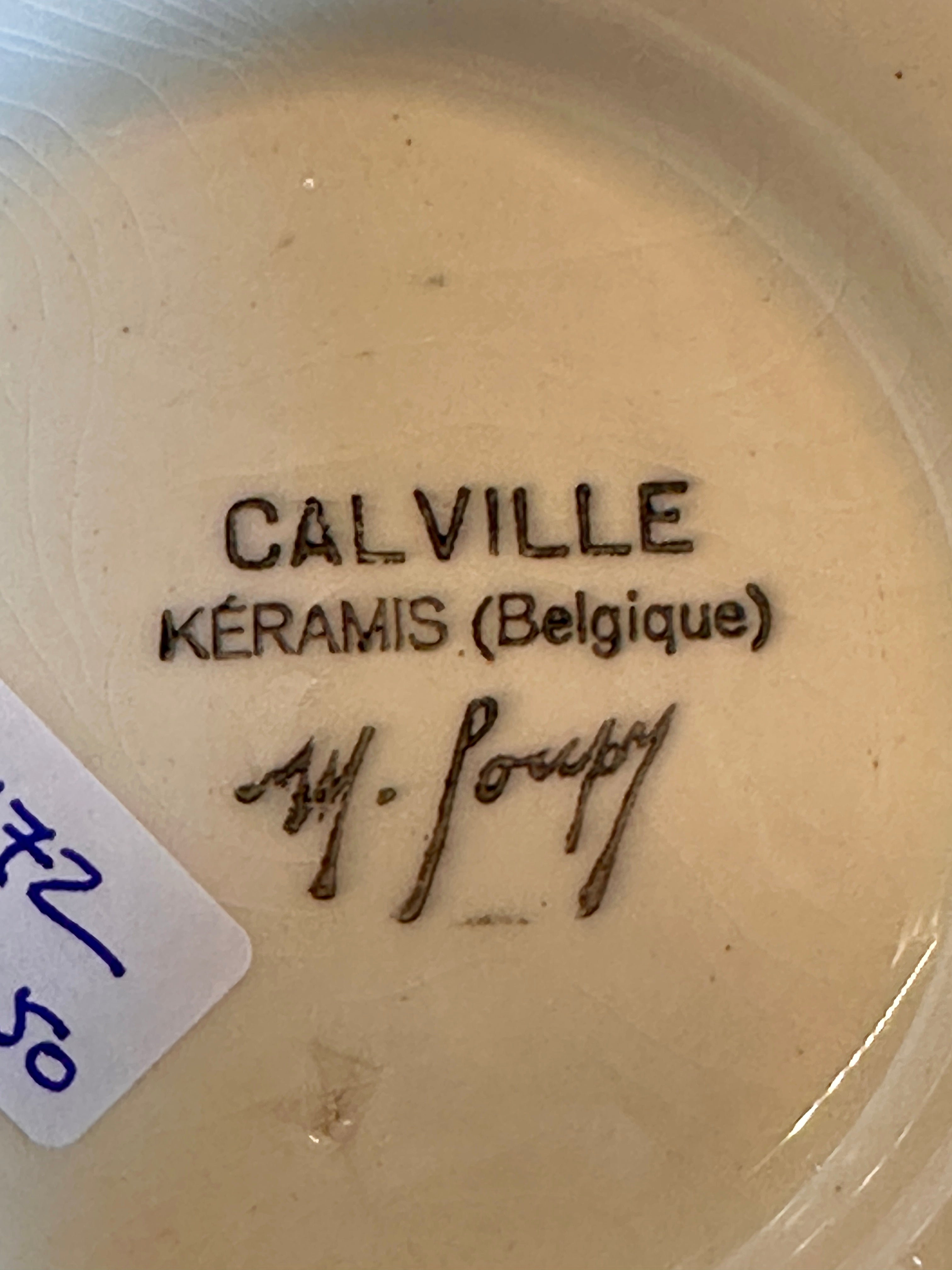 Serving dish / Presentation dish - on low foot - Keramis (Belgium) - CALVILLE decor after a design by Marcel Goupy