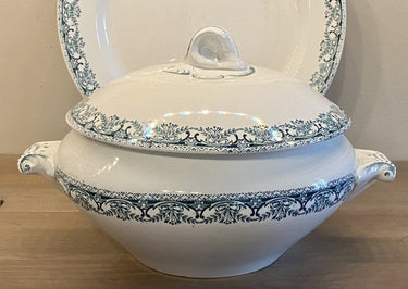 Terrine / Covered dish - Nimy - decor of a twig border in petrol