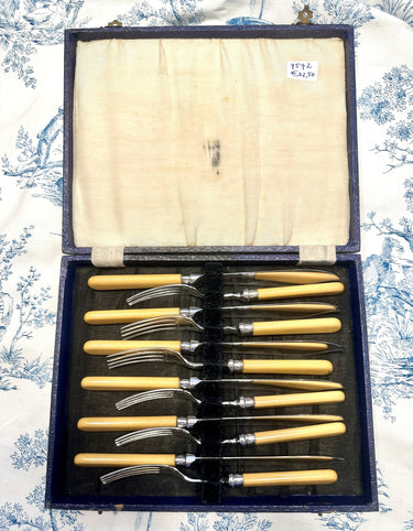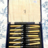 Fish cutlery / Fish cutlery - 6-piece - R&D - with ochre-coloured handle - EPNS blade - black box.
