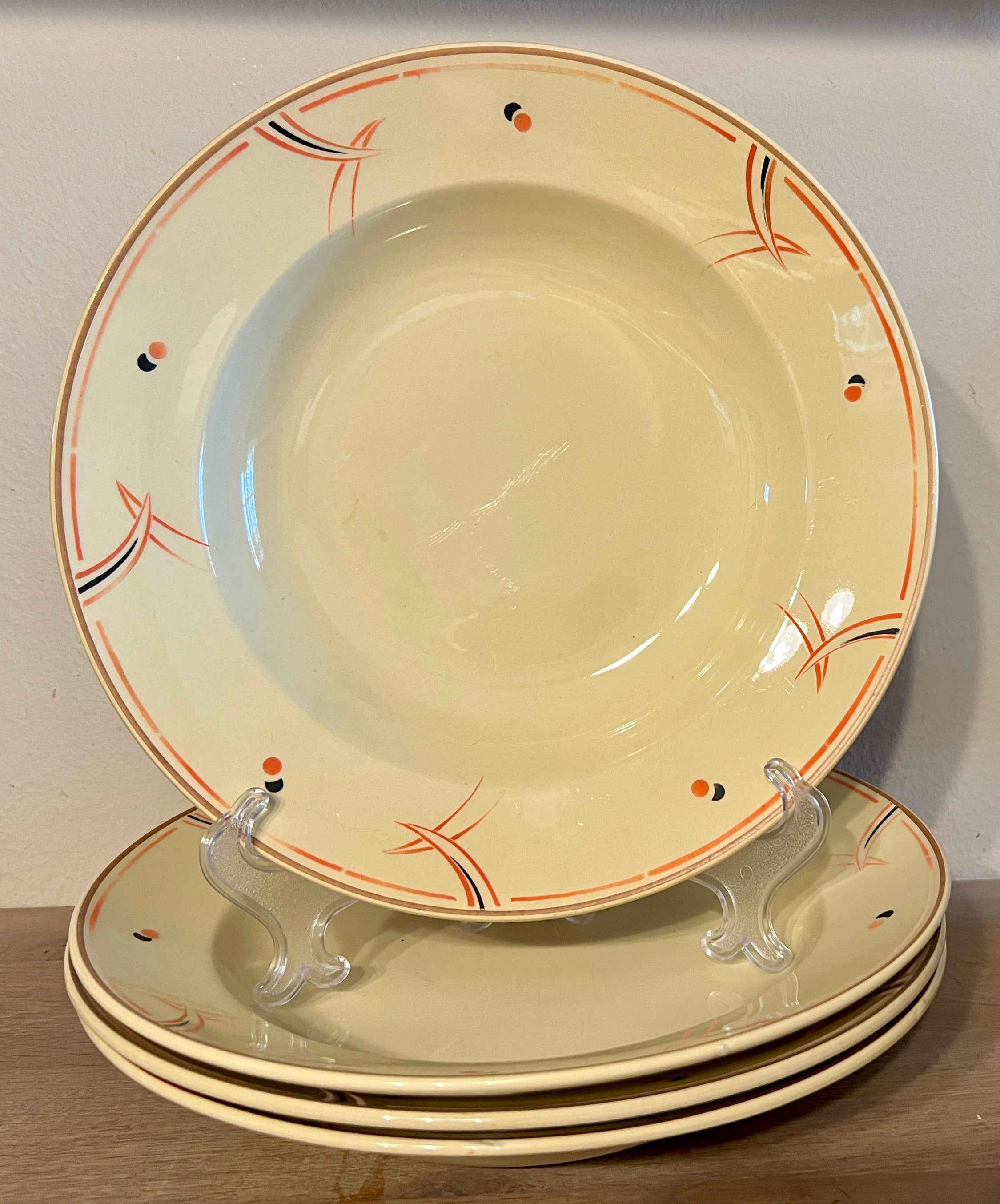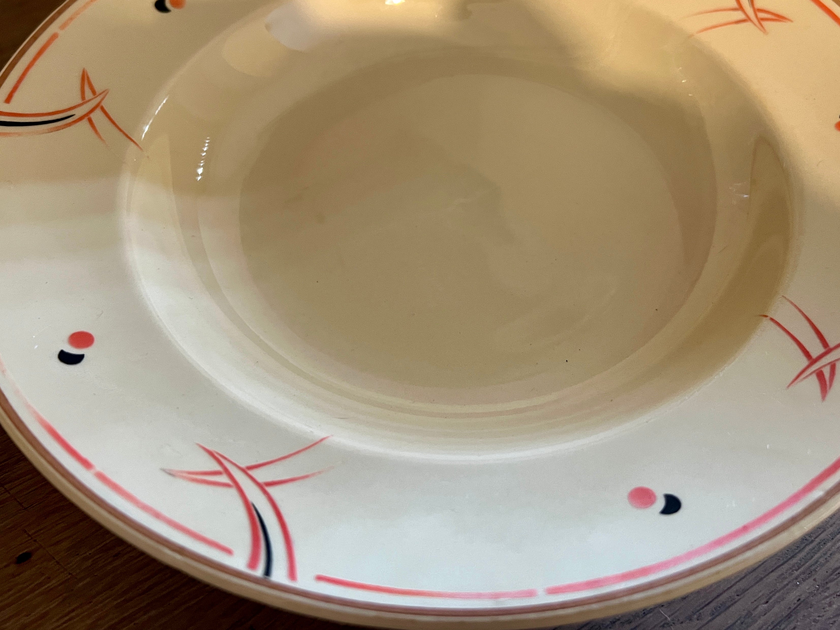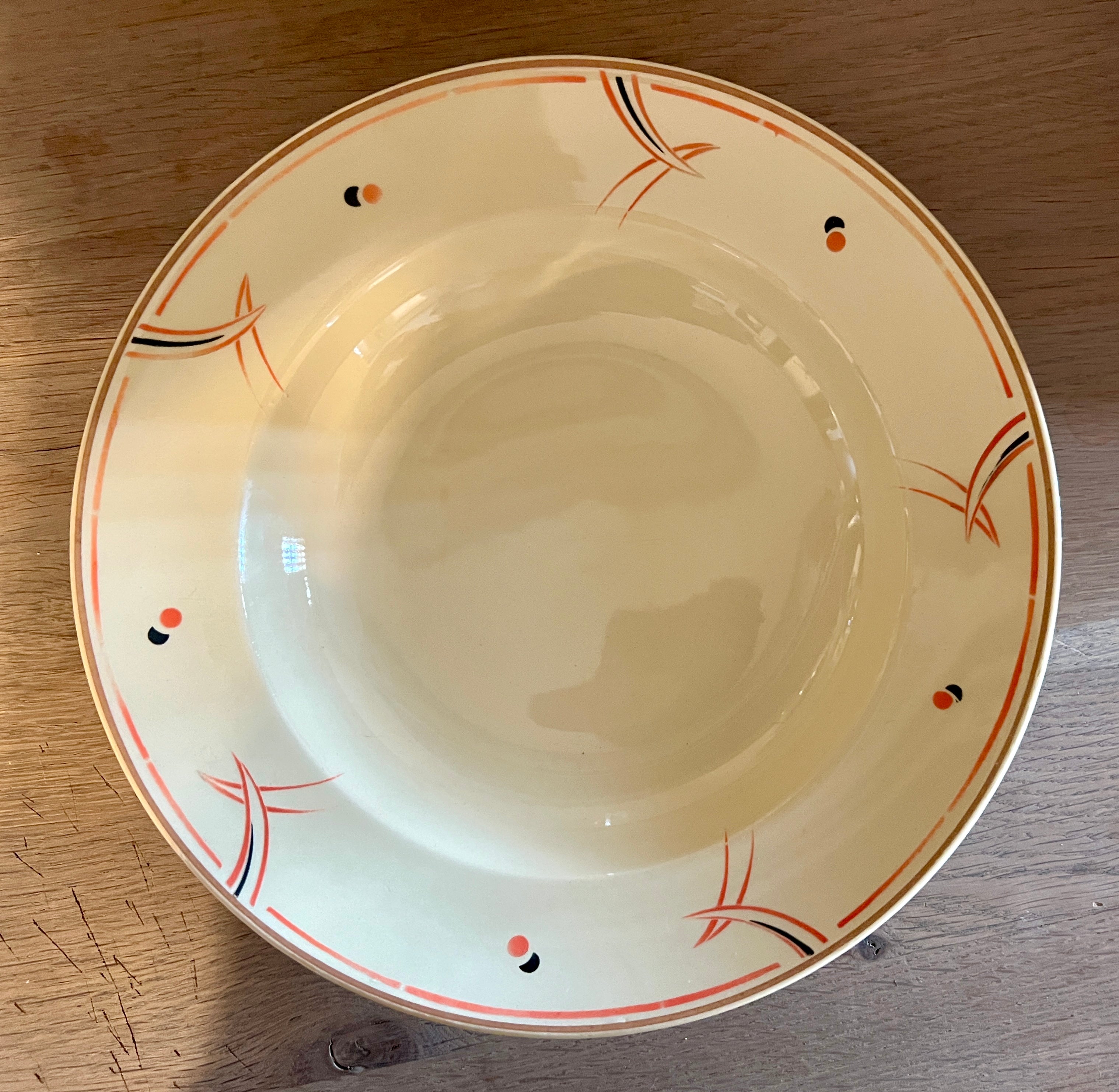 Diep bord / Soepbord / Pastabord - Boch Frères Belgique - décor uitgevoerd in rood, oranje en zwart met geometrische figuren