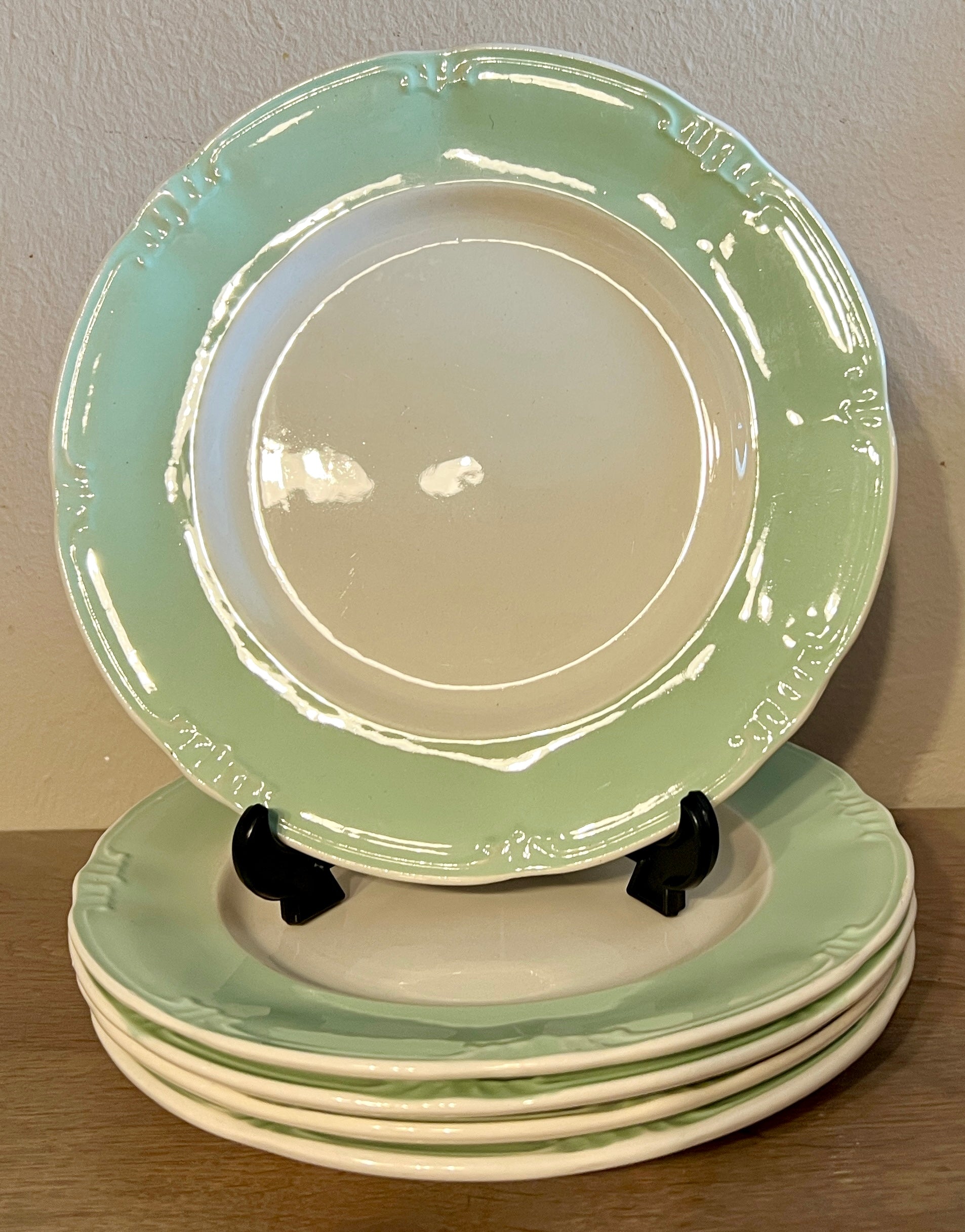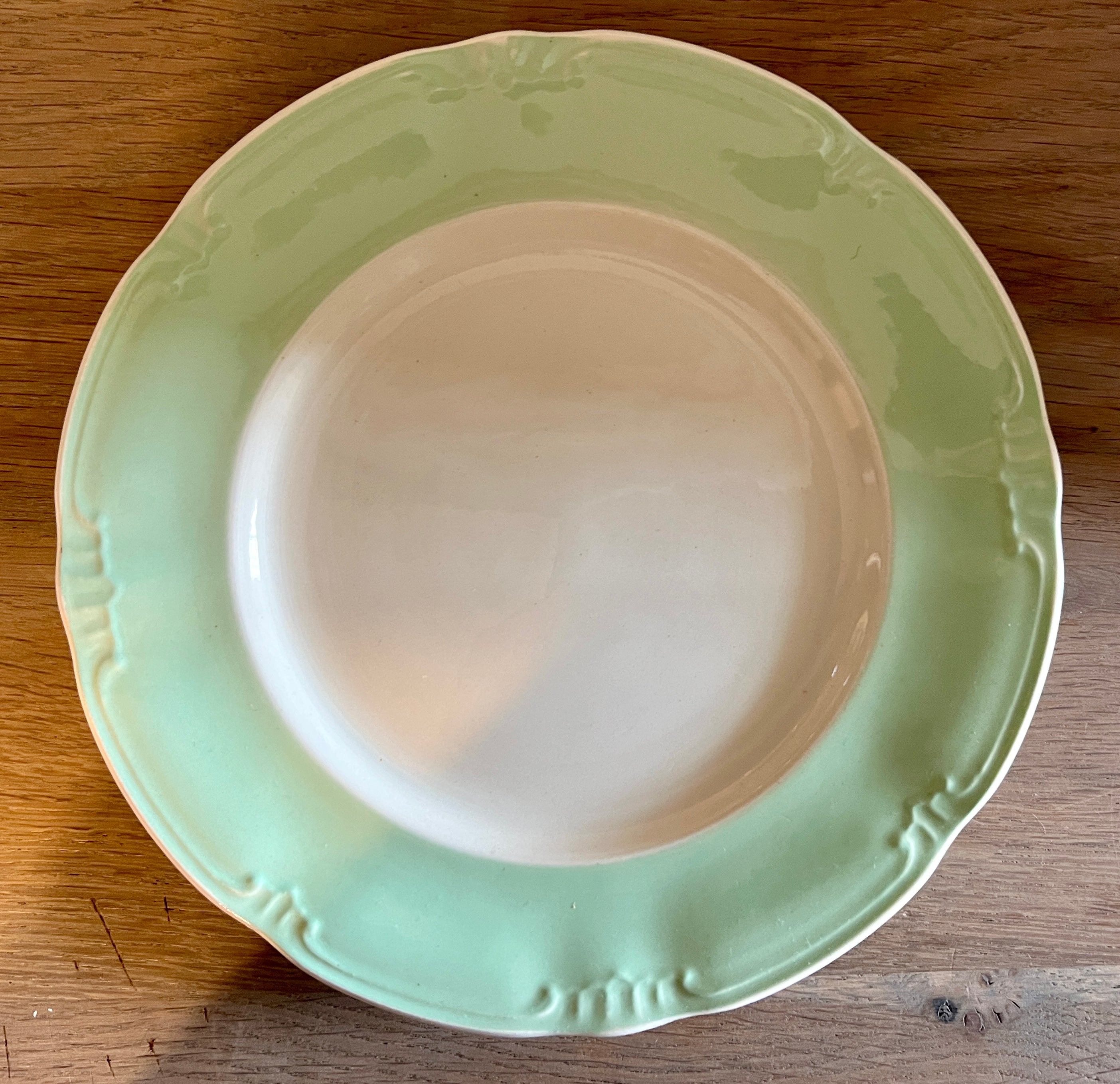 Ontbijtbord / Dessertbord - Boch - vorm CAPRI - décor in pastelgroen met bewerkte rand