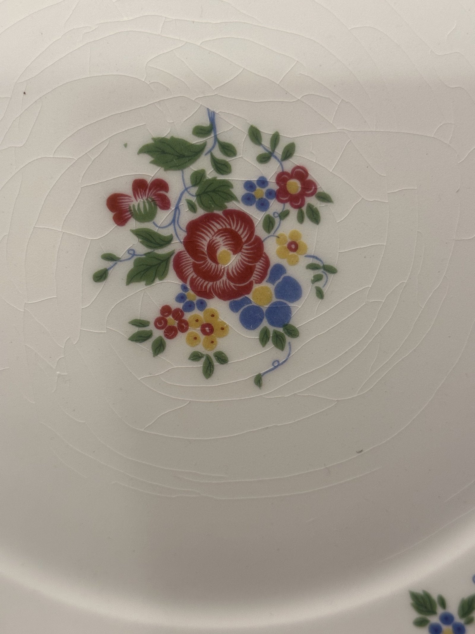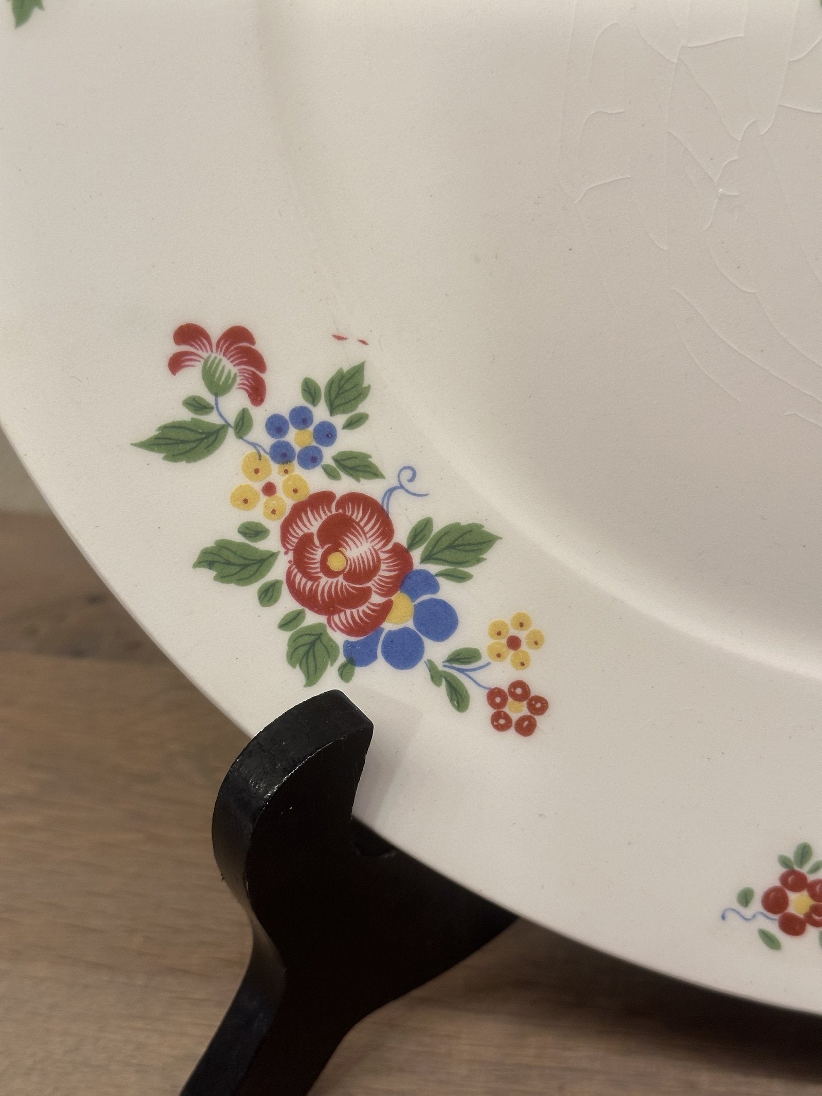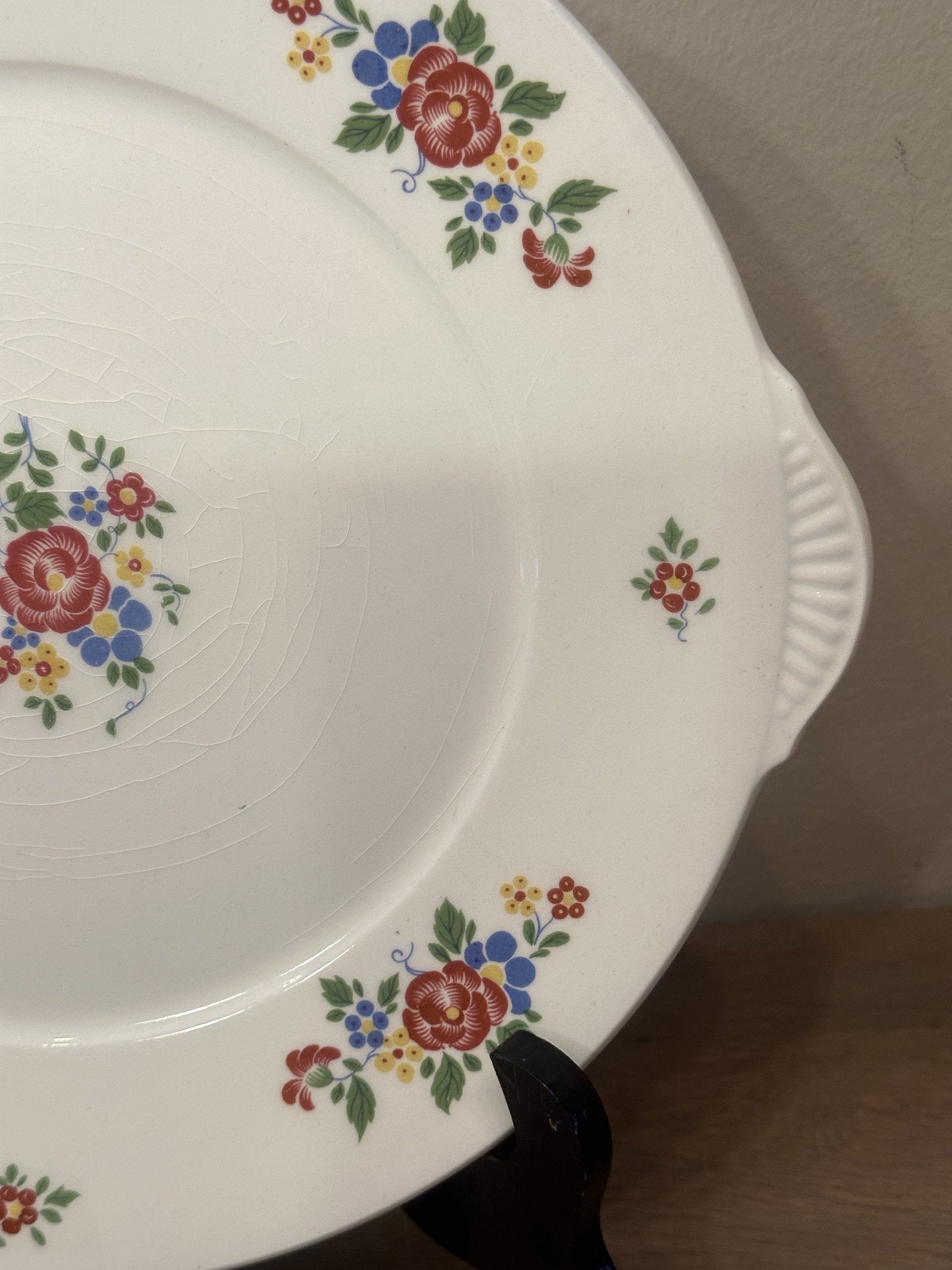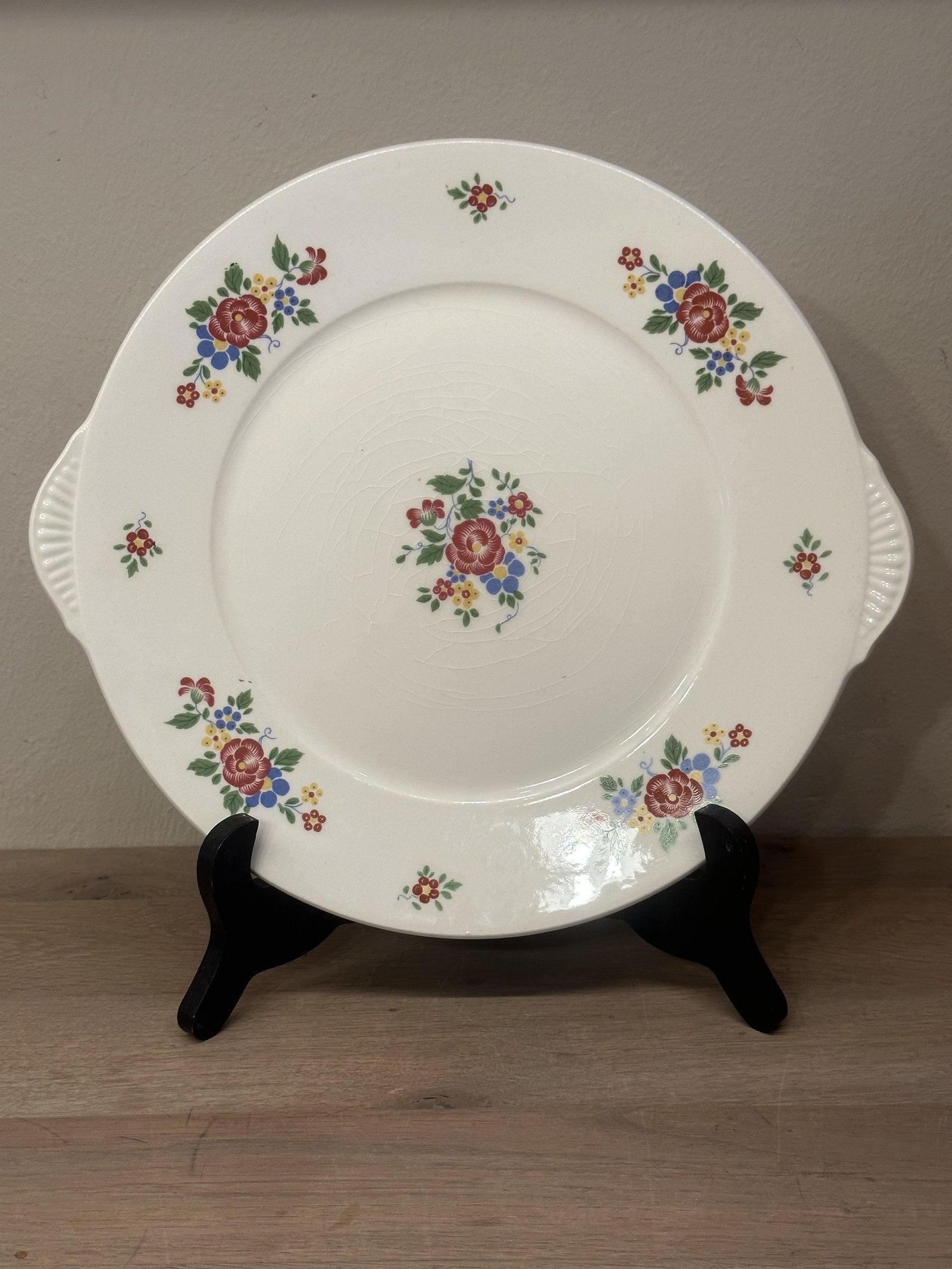 Gebakschaal - ongemerkt maar Petrus Regout - décor met roze/gele/blauwe bloemen en reliëforen.