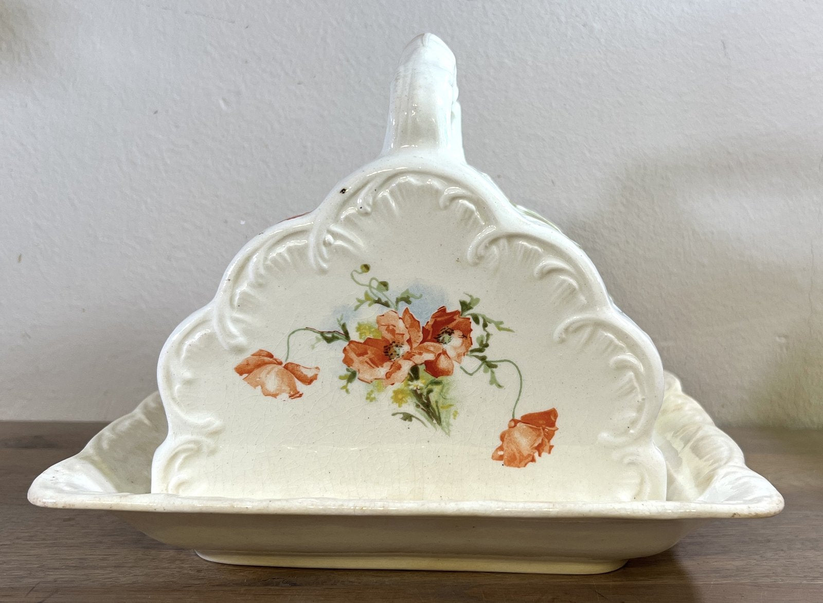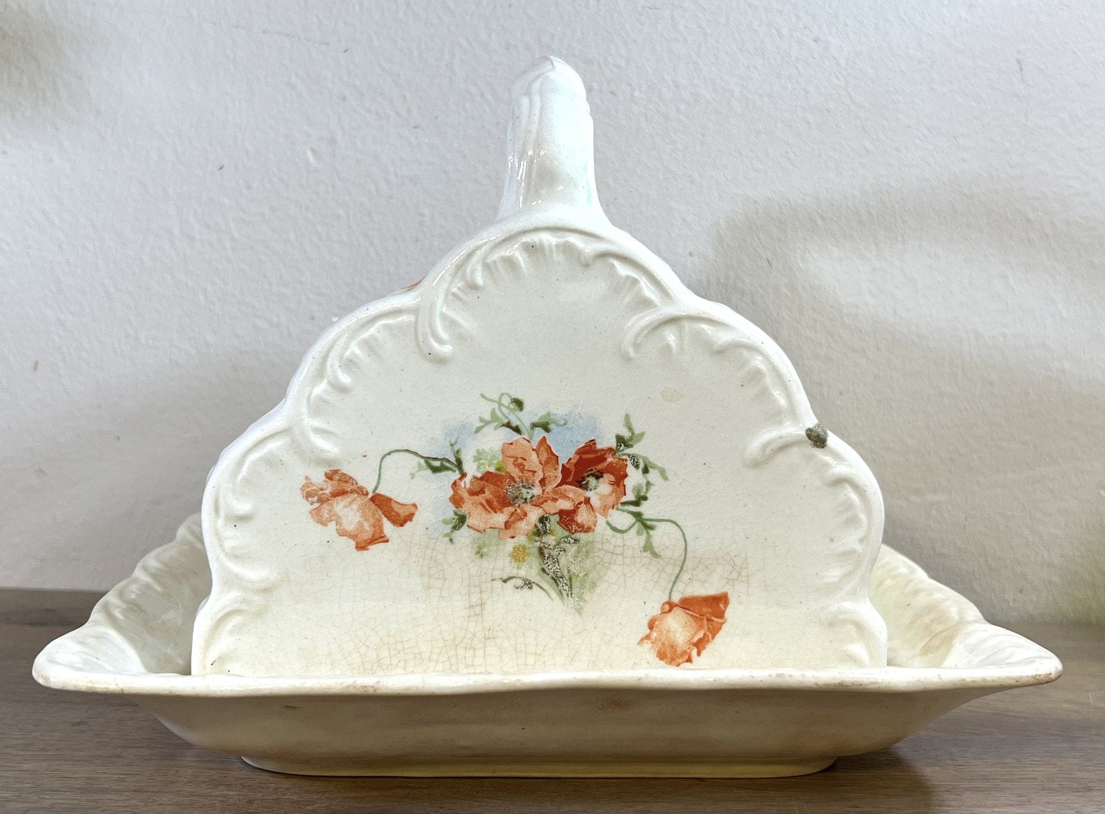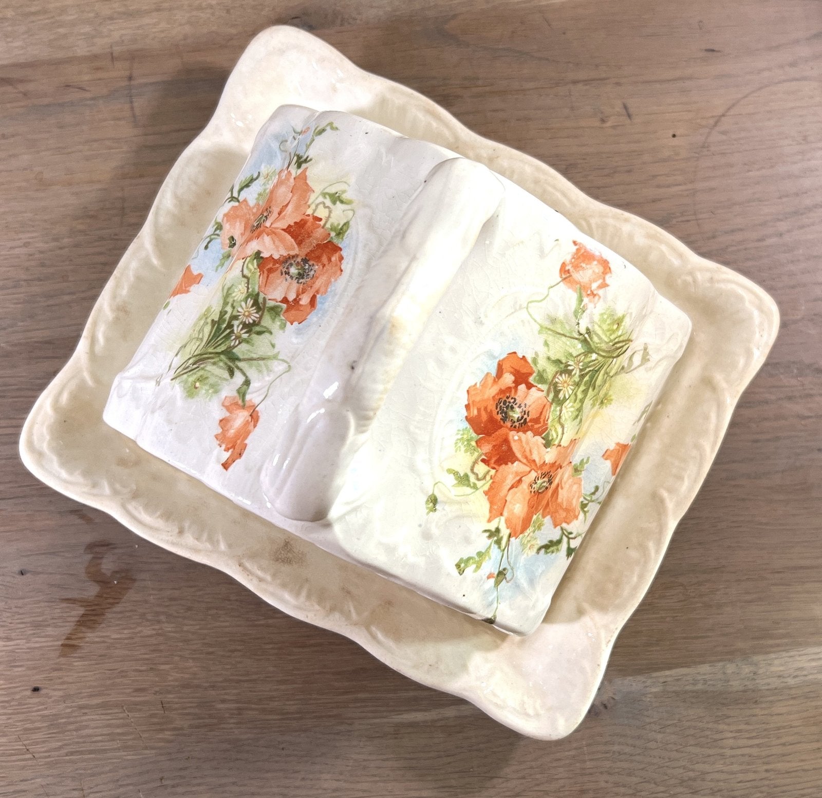 Kaasstolp / Boterstolp - ongemerkt maar zeer waarschijnlijk Wessel Bonn Imperial (Duitsland) - decoratie met mooie kleurige klaprozen - genummerd met 5691 en iets wat lijkt op 'zg'.