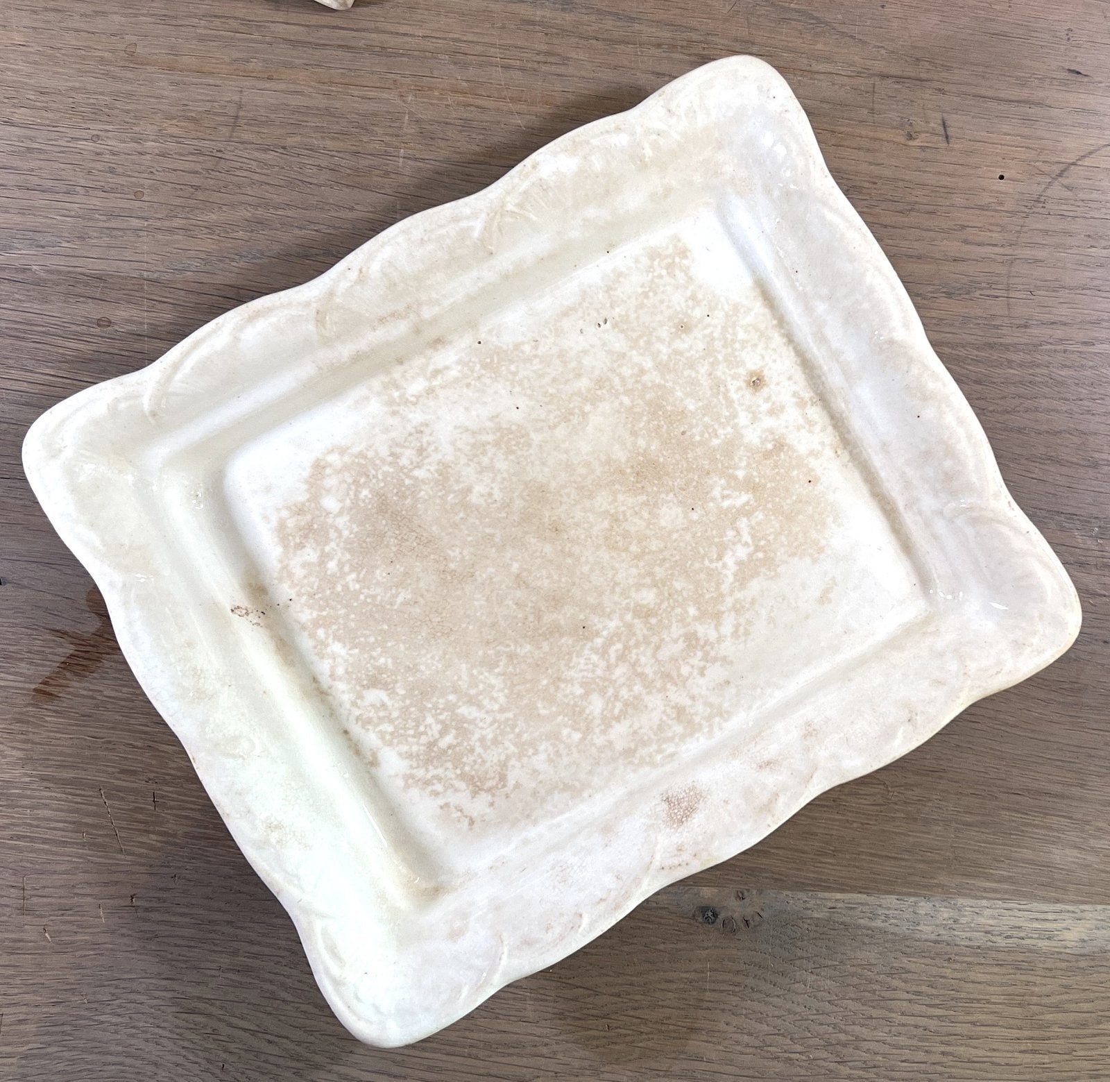 Onderstuk afm. 22,5 x 19 x 3,5 cm., stolp afm. 16,5 x 12 x 17 (incl. handgreep) cm.