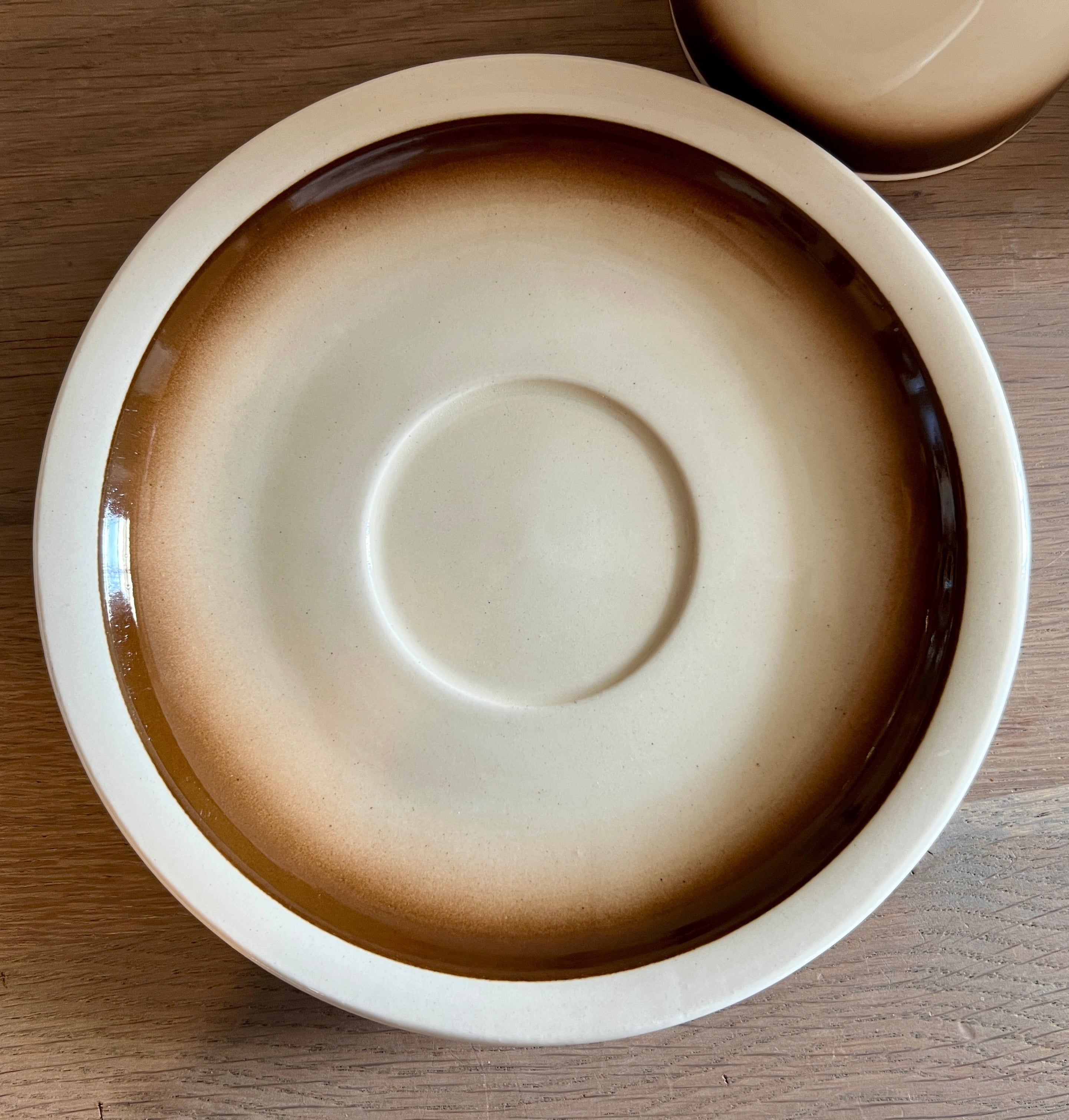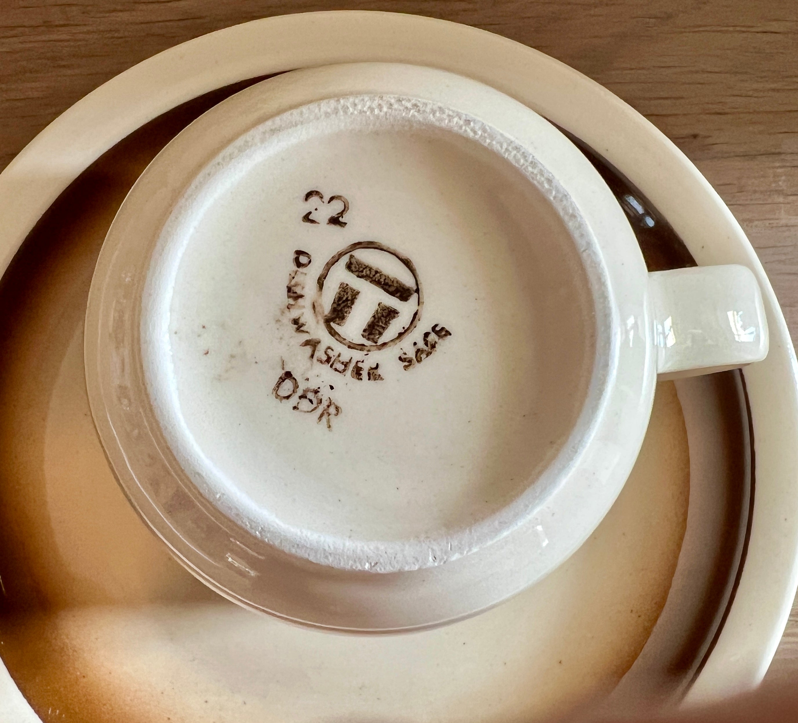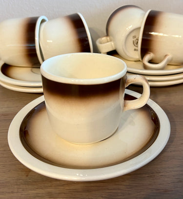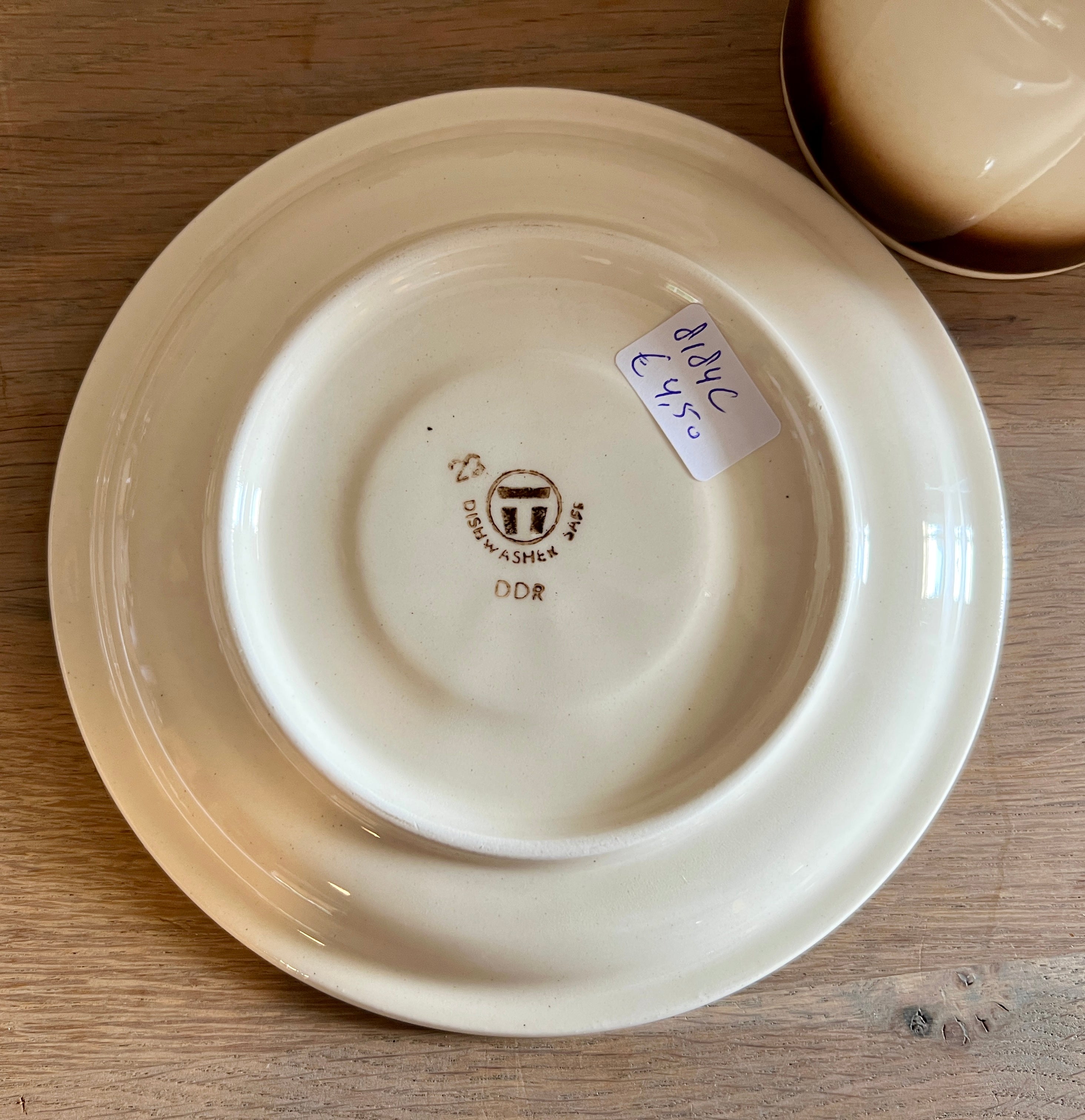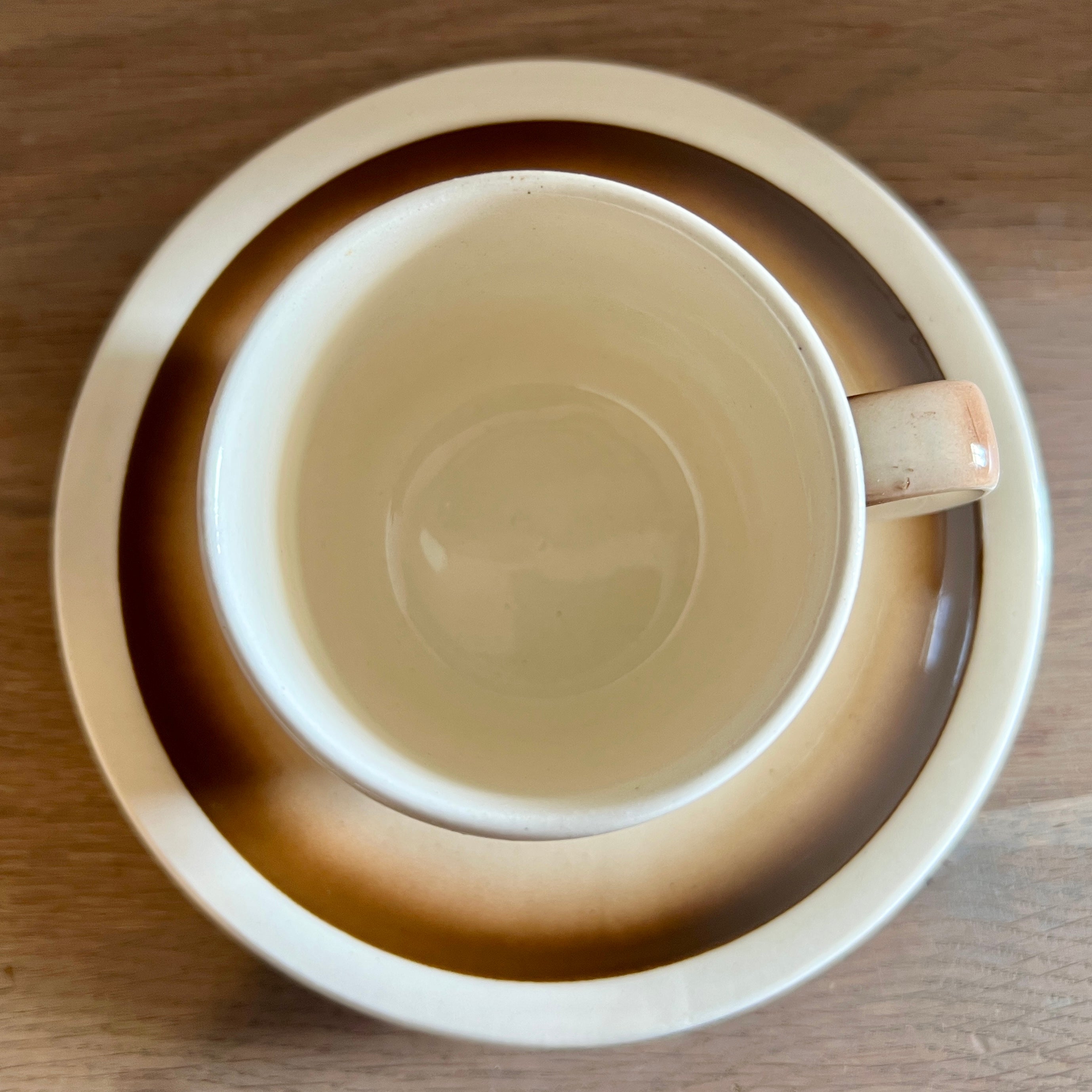 Kop en schotel - Torgau (DDR) - décor met een bruine kleur band op een crème ondergrond