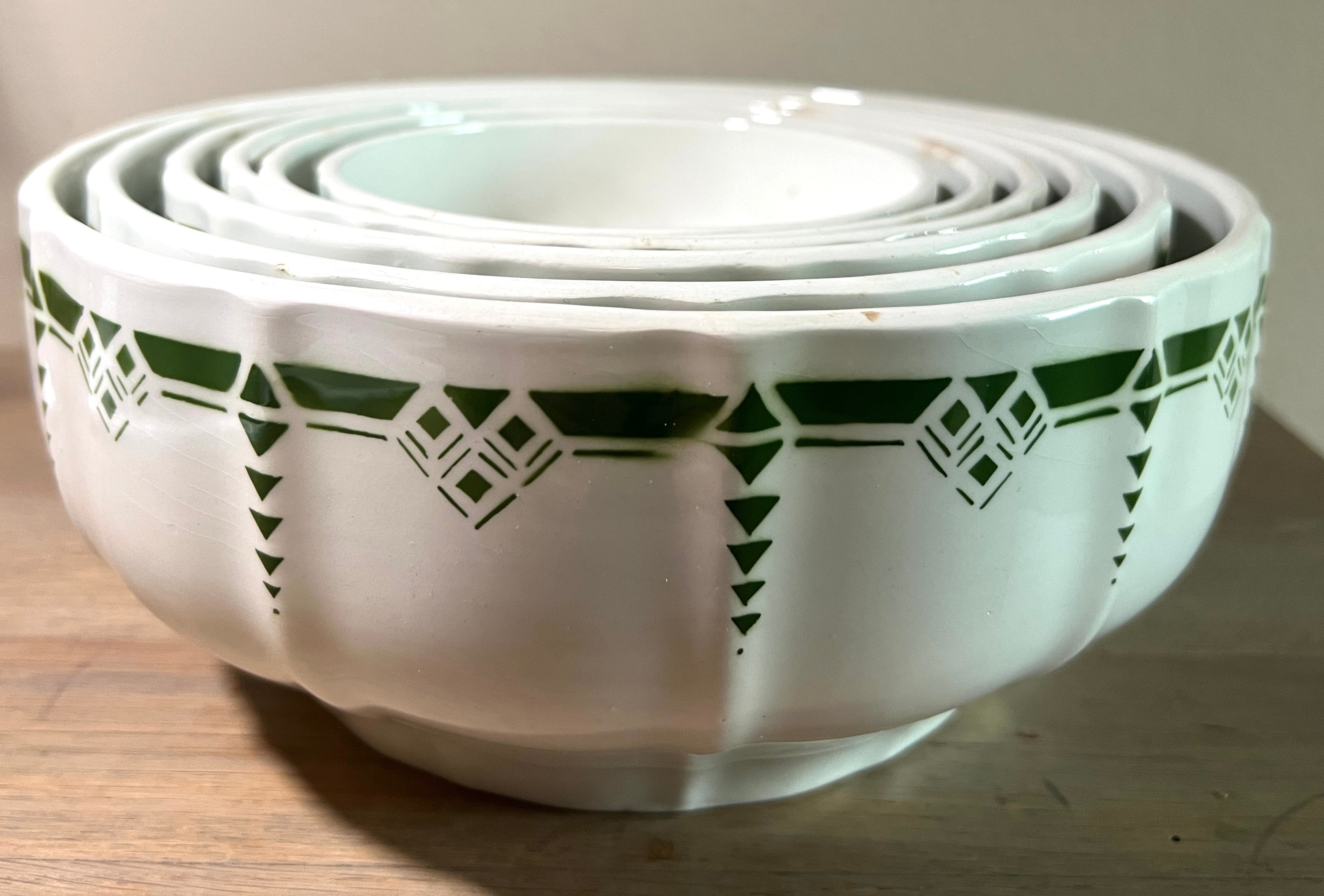 Nestschalen set 6-delig - Boch - decor in groen - Art Nouveau