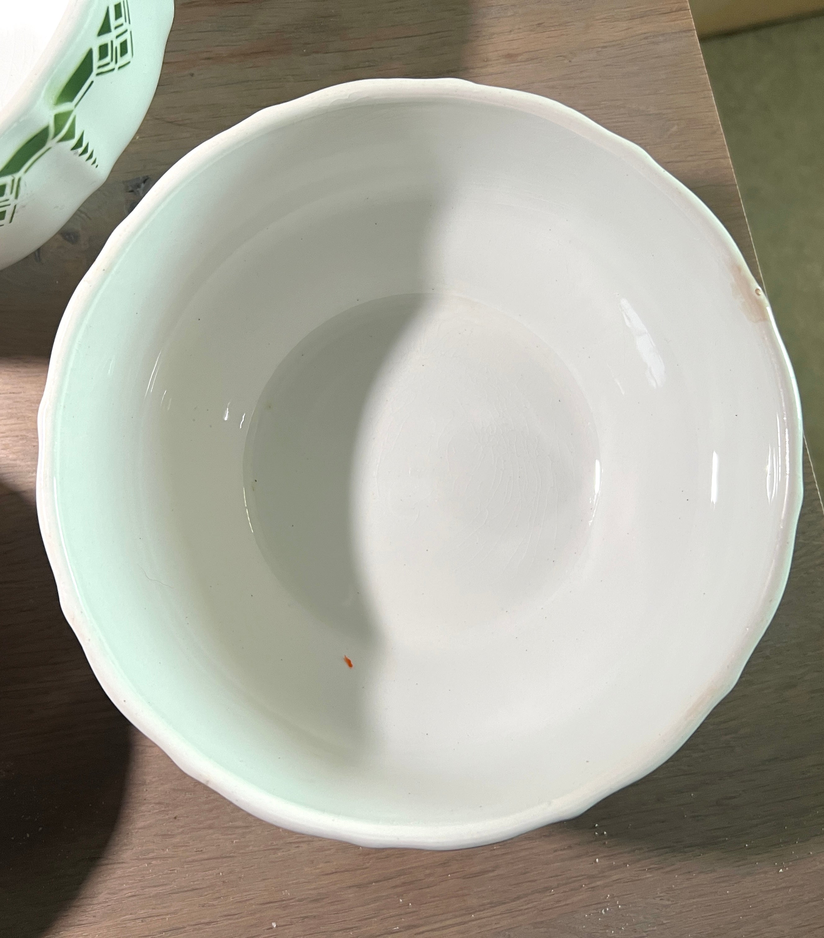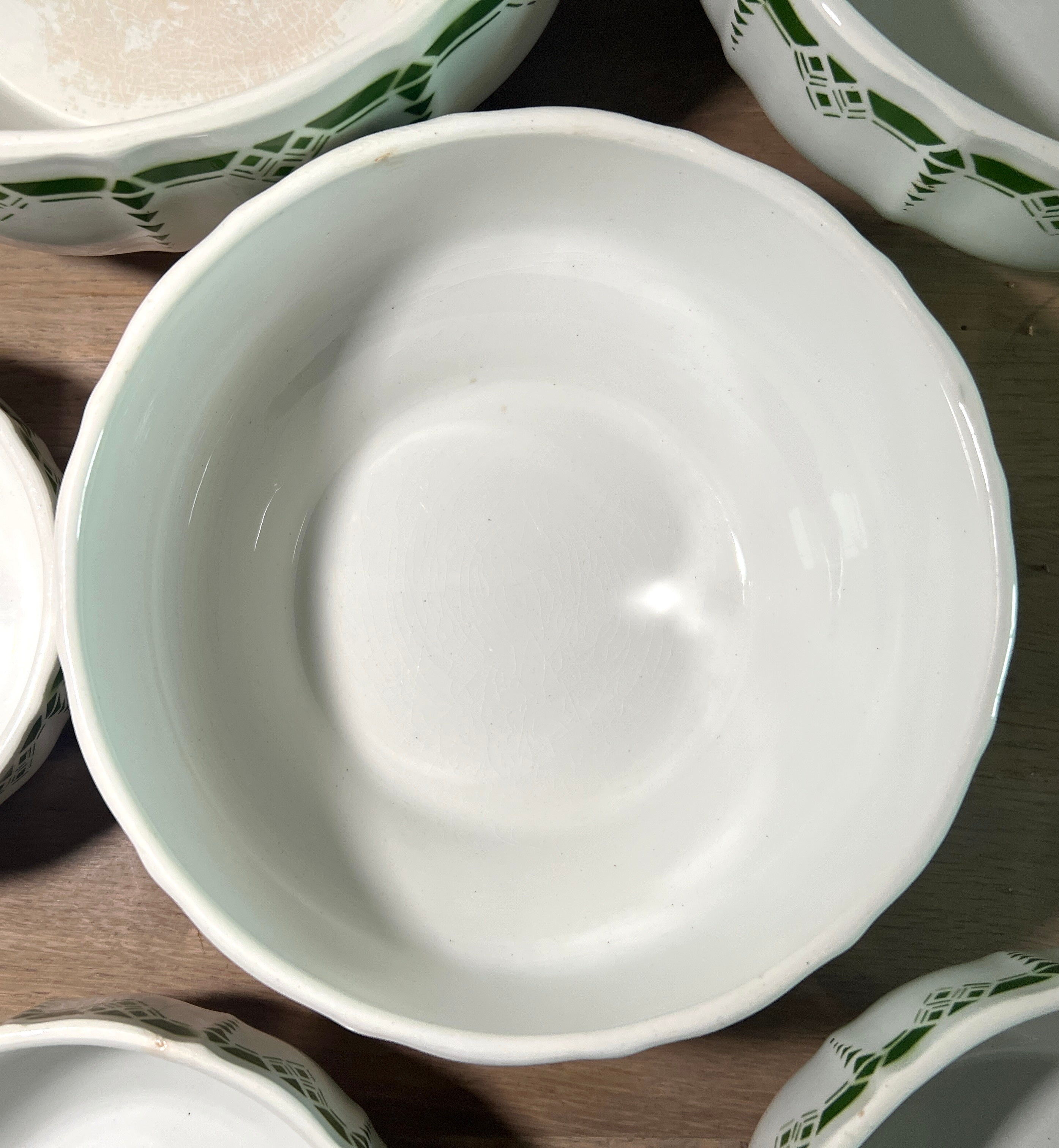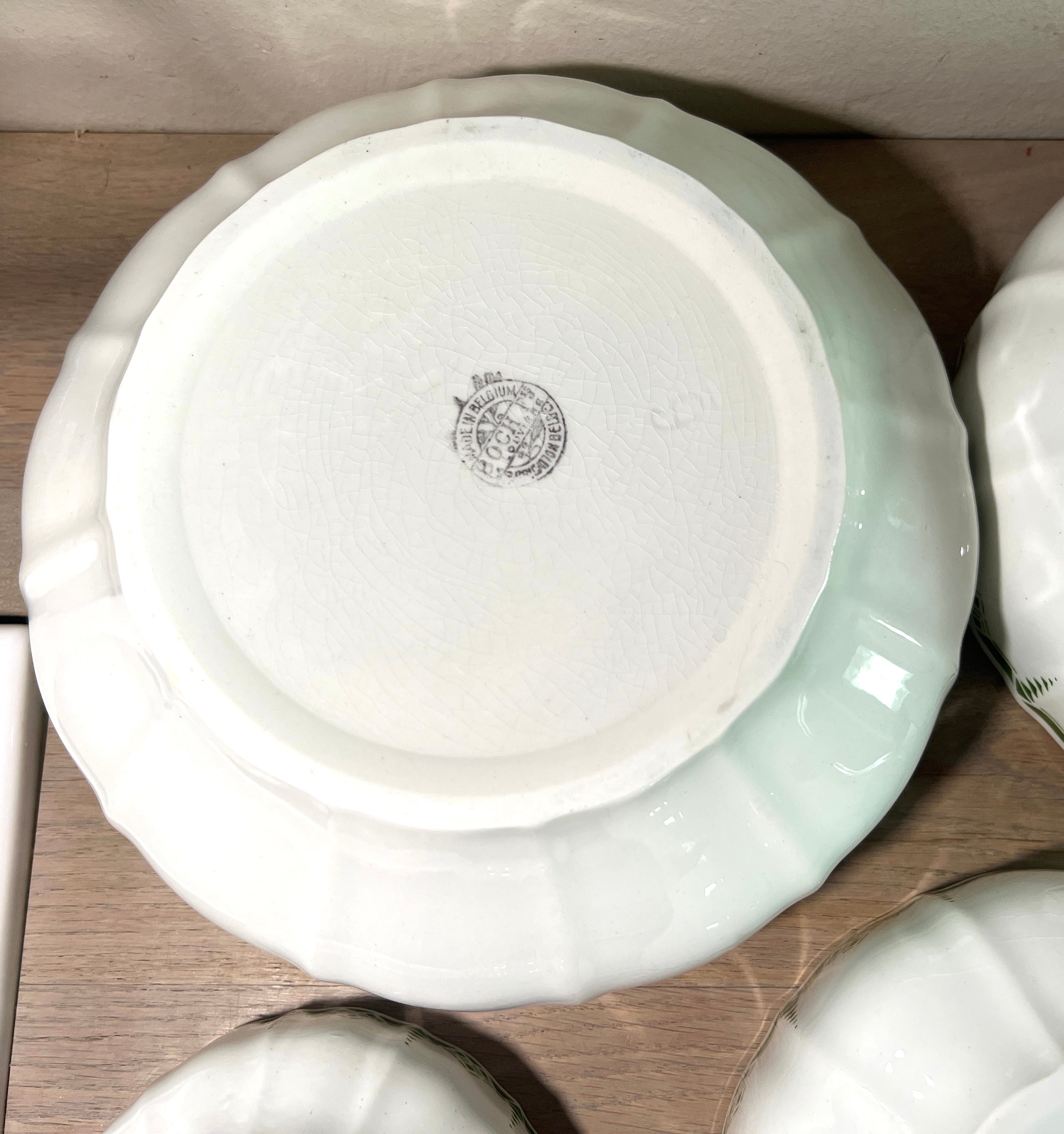 Alle schalen in onbeschadigde, goede tot zeer goede, staat - grootste schaal heeft bruine craquelé op de bodem, enkele andere schalen wat bruine plekken aan vnl de bovenrand en enige craquelé