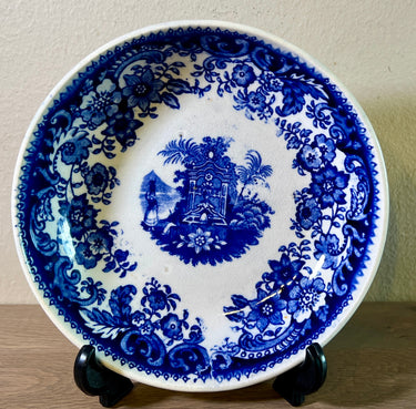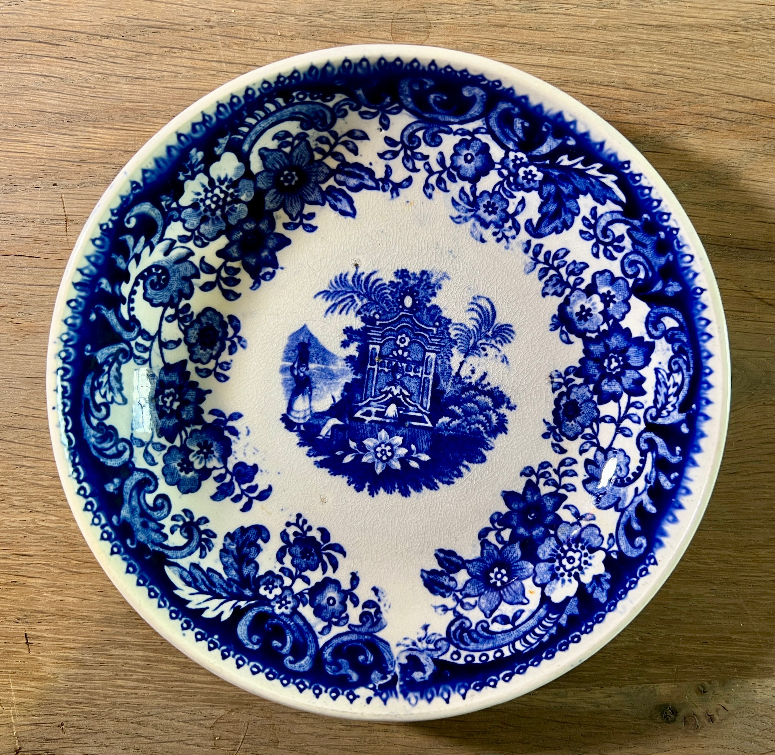 Onderschotel / Schotel - dieper model - Boch Frères - décor FONTAINE uitgevoerd in blauw