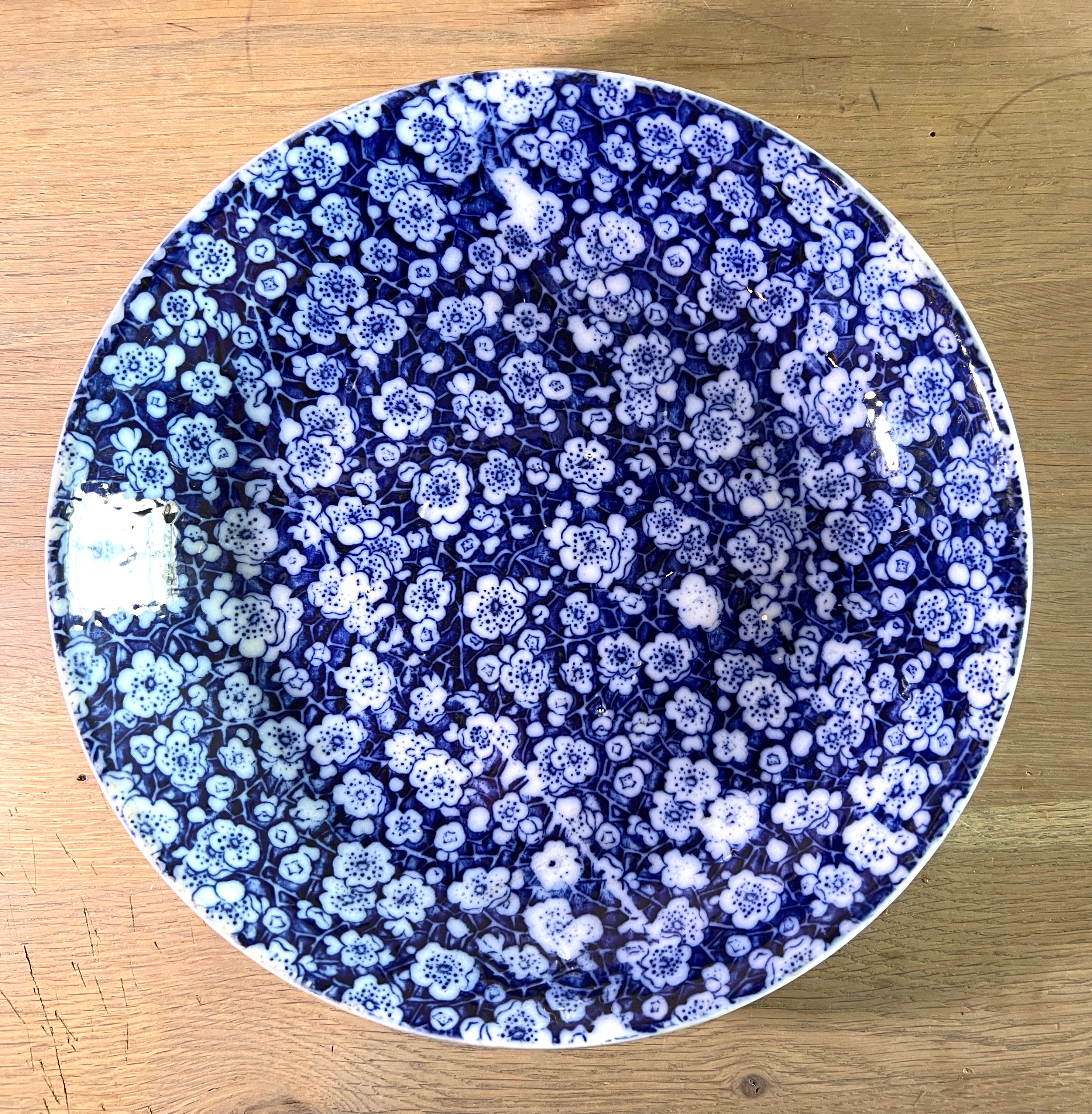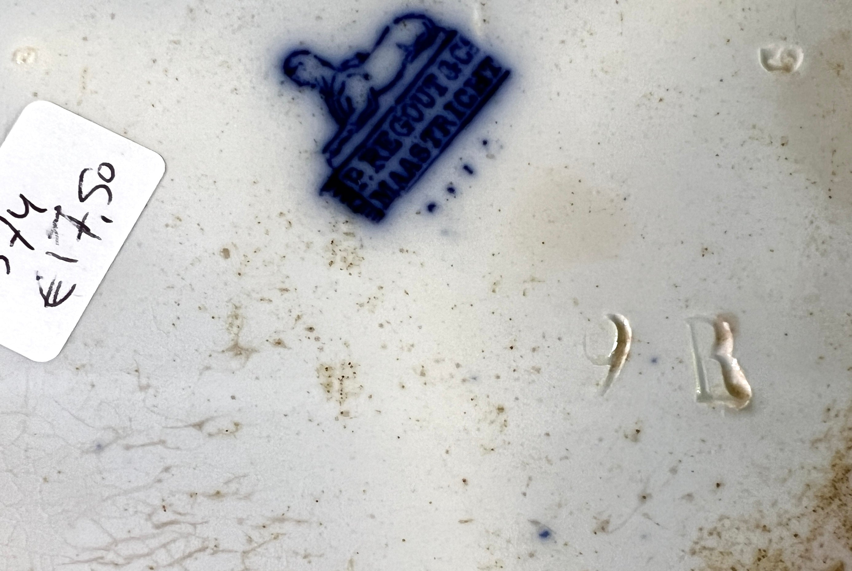 Saladeschaal / Kom - middelhoog model - Petrus Regout - décor ALLA uitgevoerd in blauw - periode 1882-1913