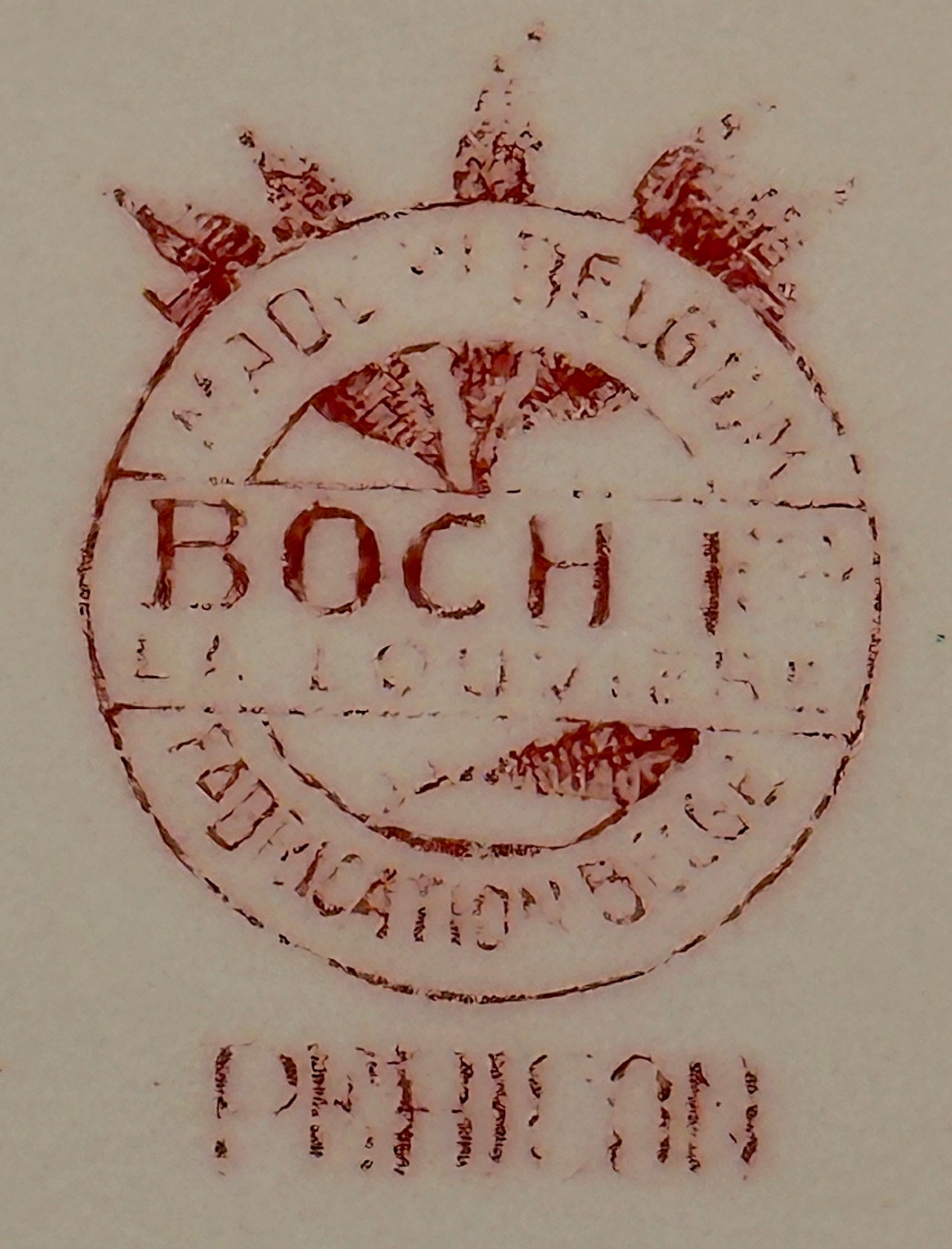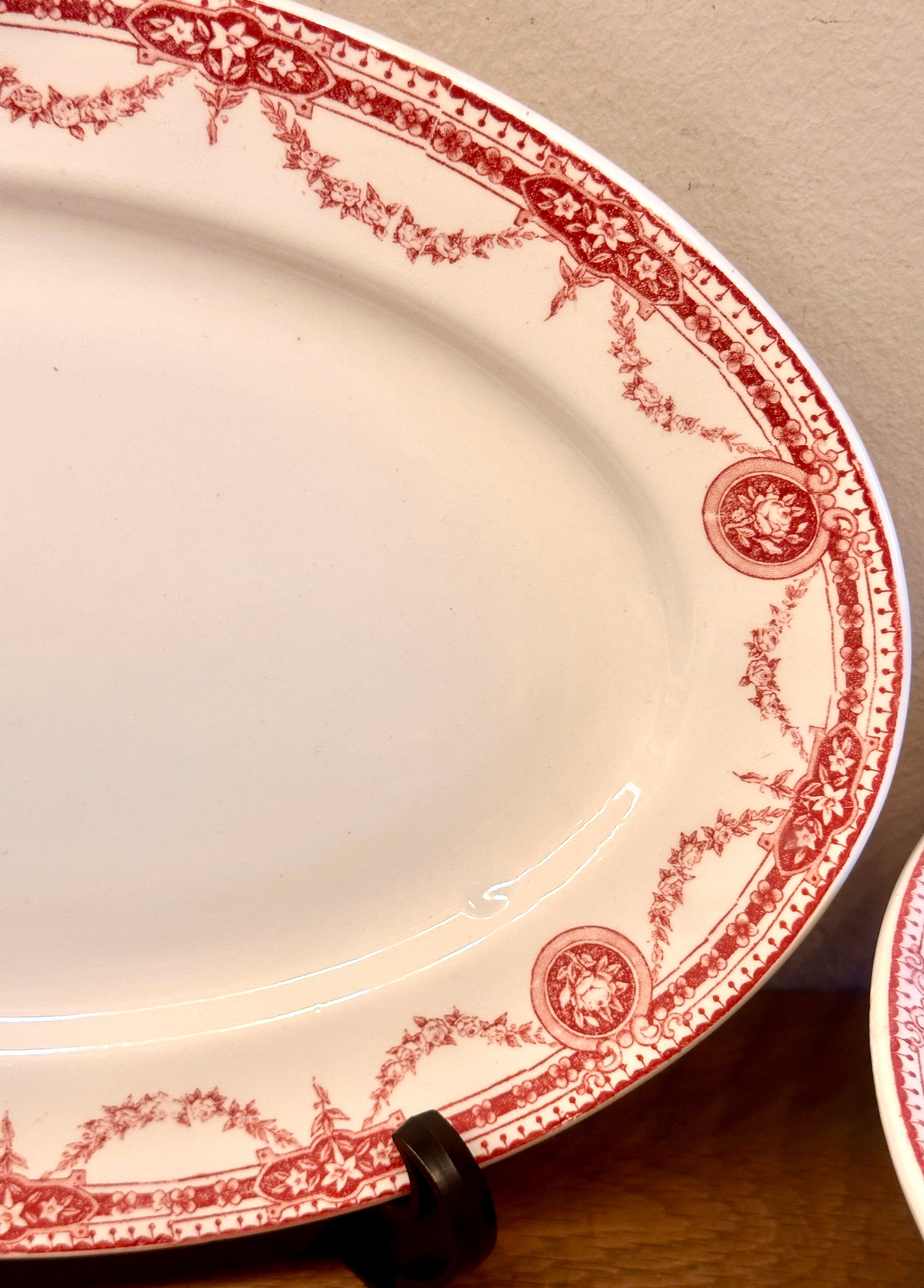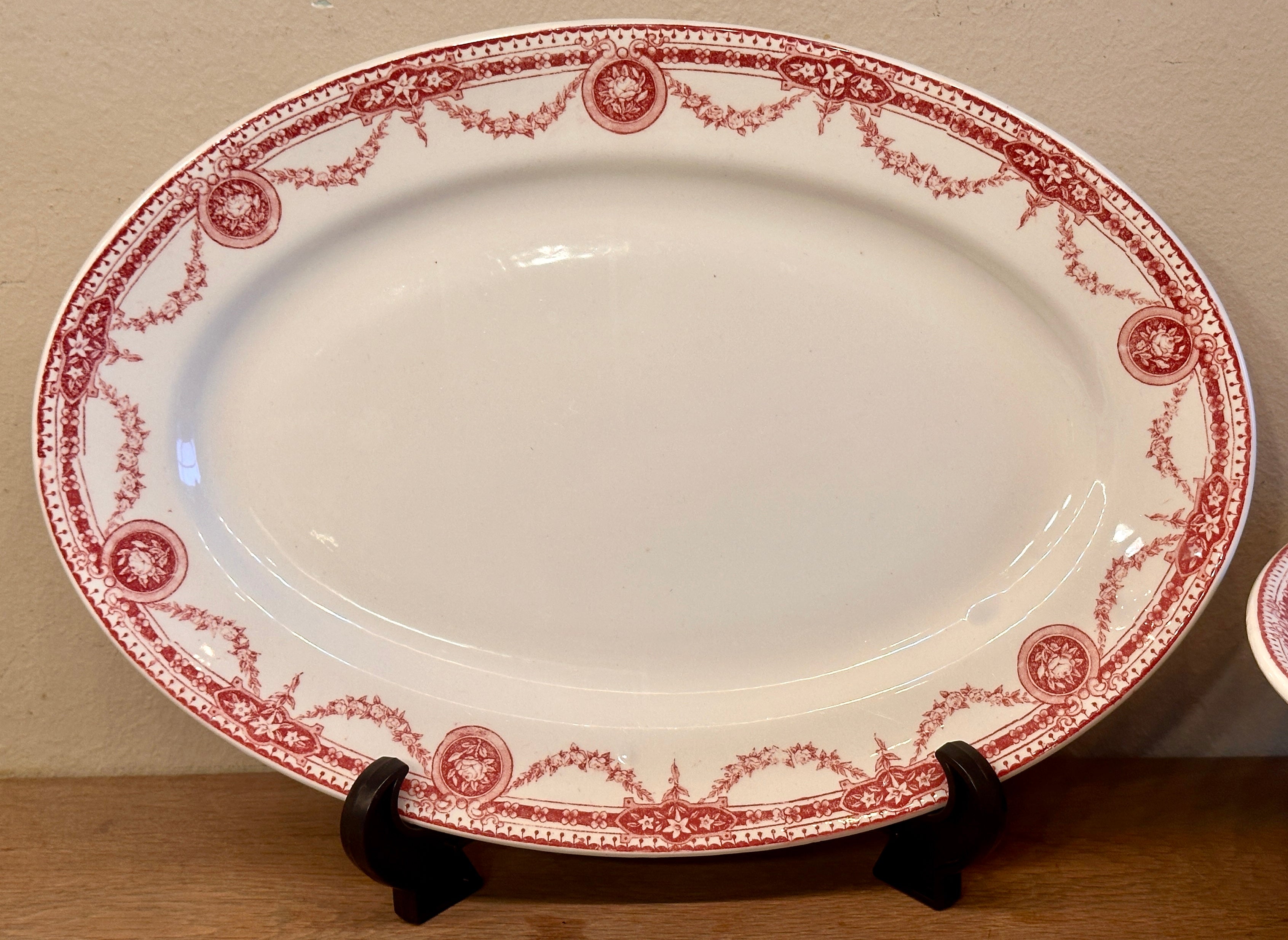 Schaal / Bord - ovaal, plat, model - Boch - décor PERICON uitgevoerd in rood - jaren 1920-1930