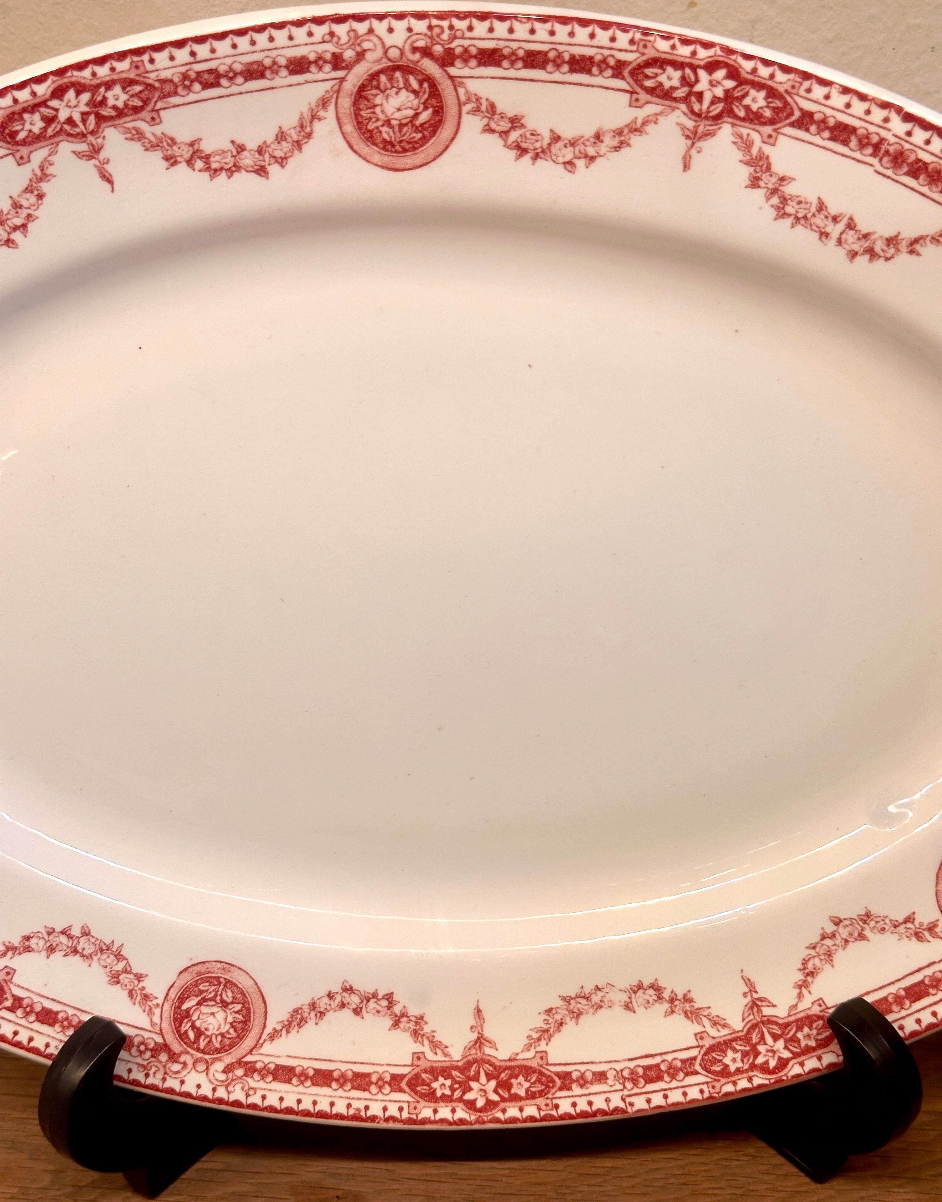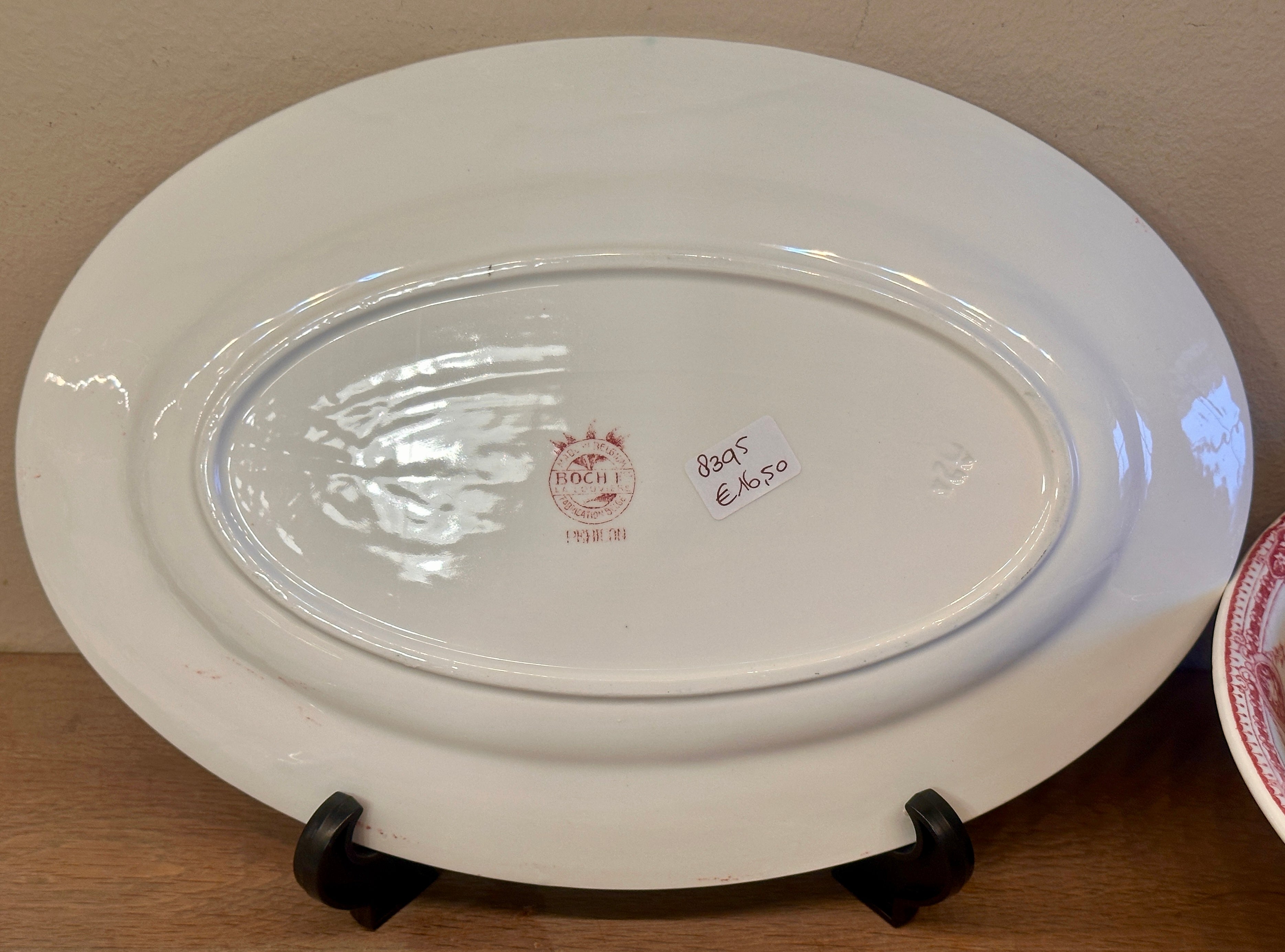 Schaal / Bord - ovaal, plat, model - Boch - décor PERICON uitgevoerd in rood