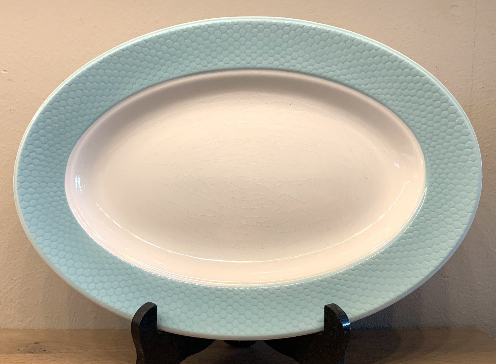 Schaal ovaal - ongemerkt (waarschijnlijk Frans) - azuurblauw met een soort bijenkorfreliëf