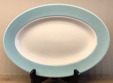 Schaal ovaal - ongemerkt (waarschijnlijk Frans) - azuurblauw met een soort bijenkorfreliëf.