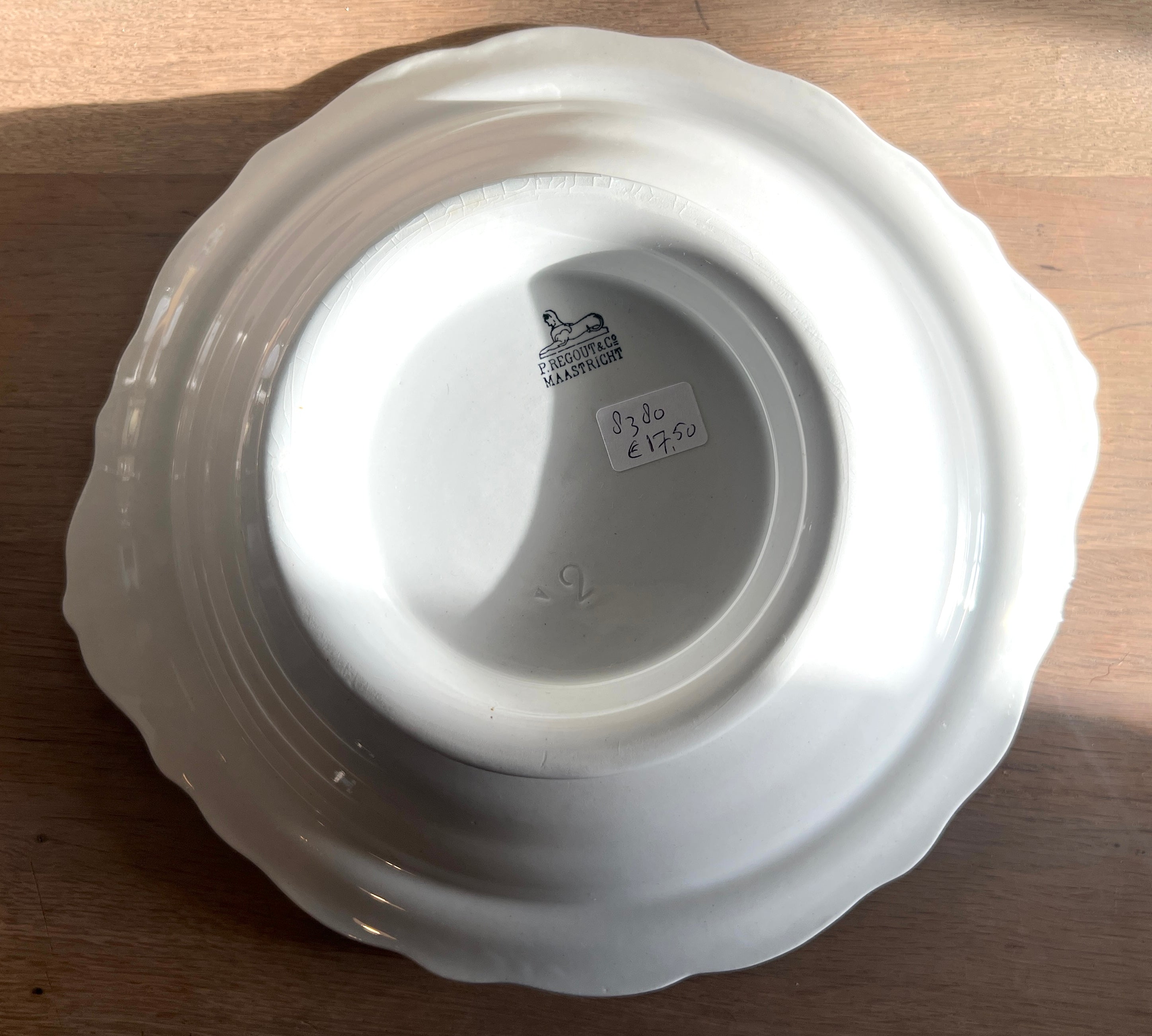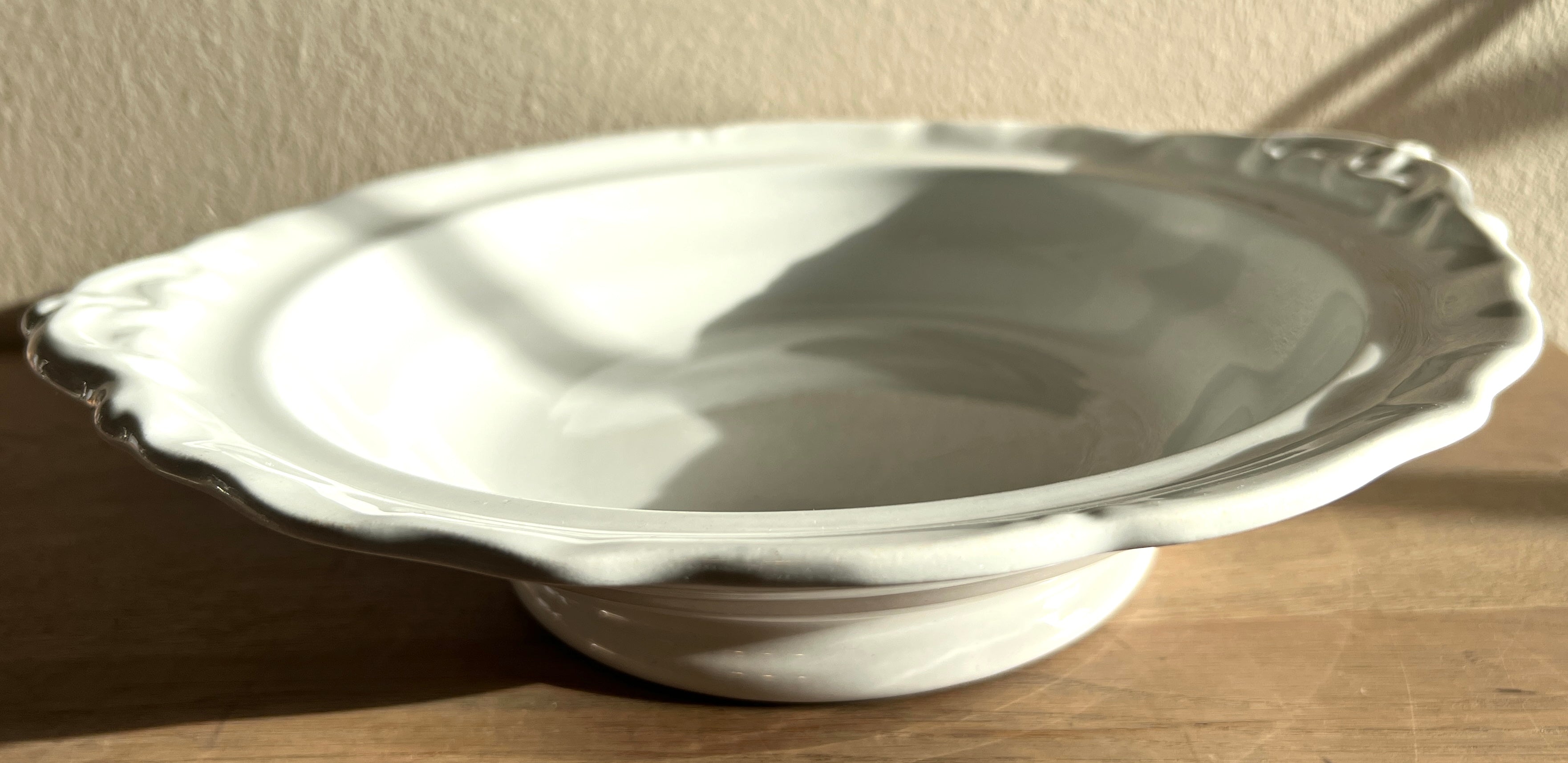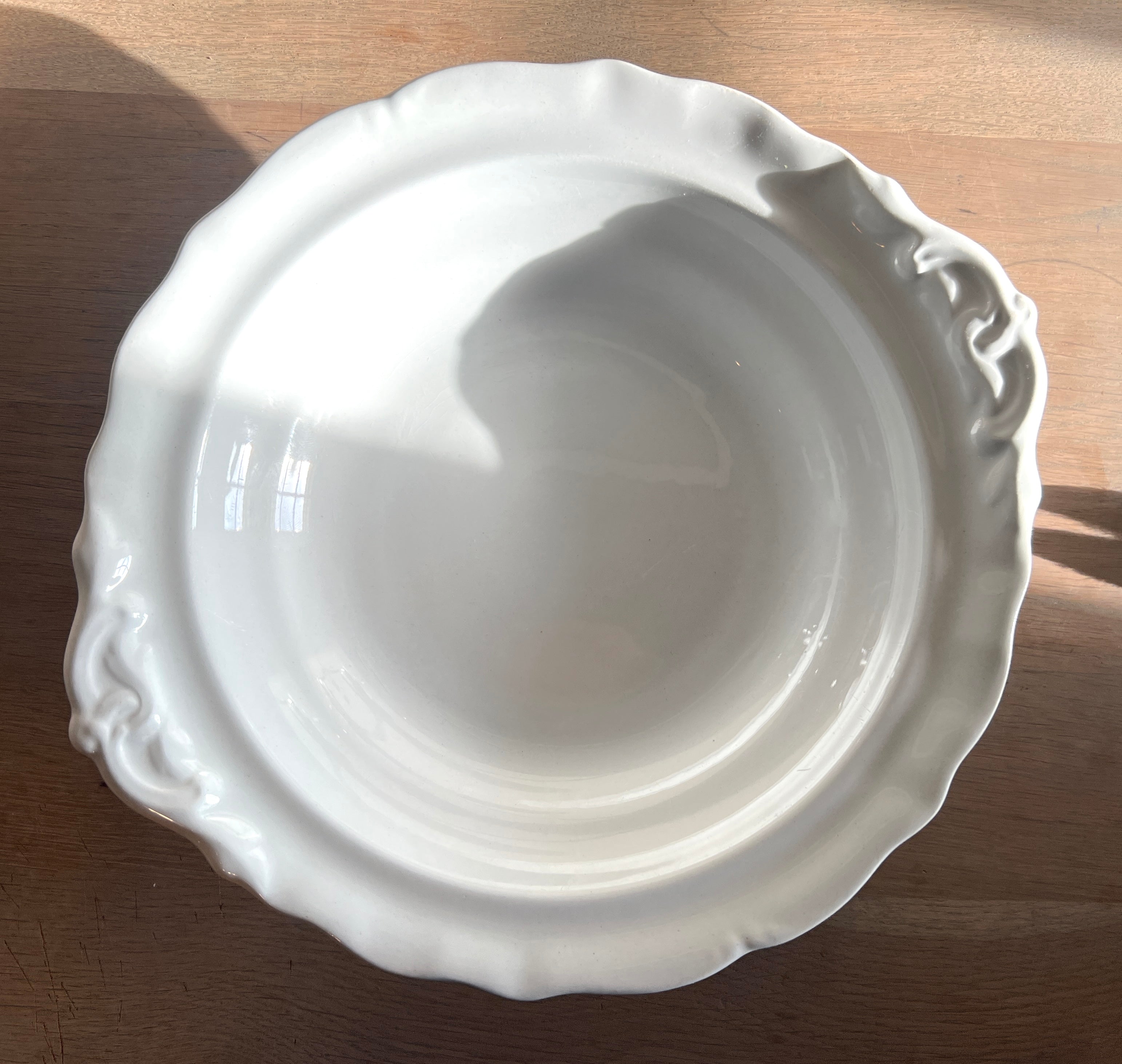Schaal - laag model - Petrus Regout - model WELLINGTON in wit aardewerk met handgrepen