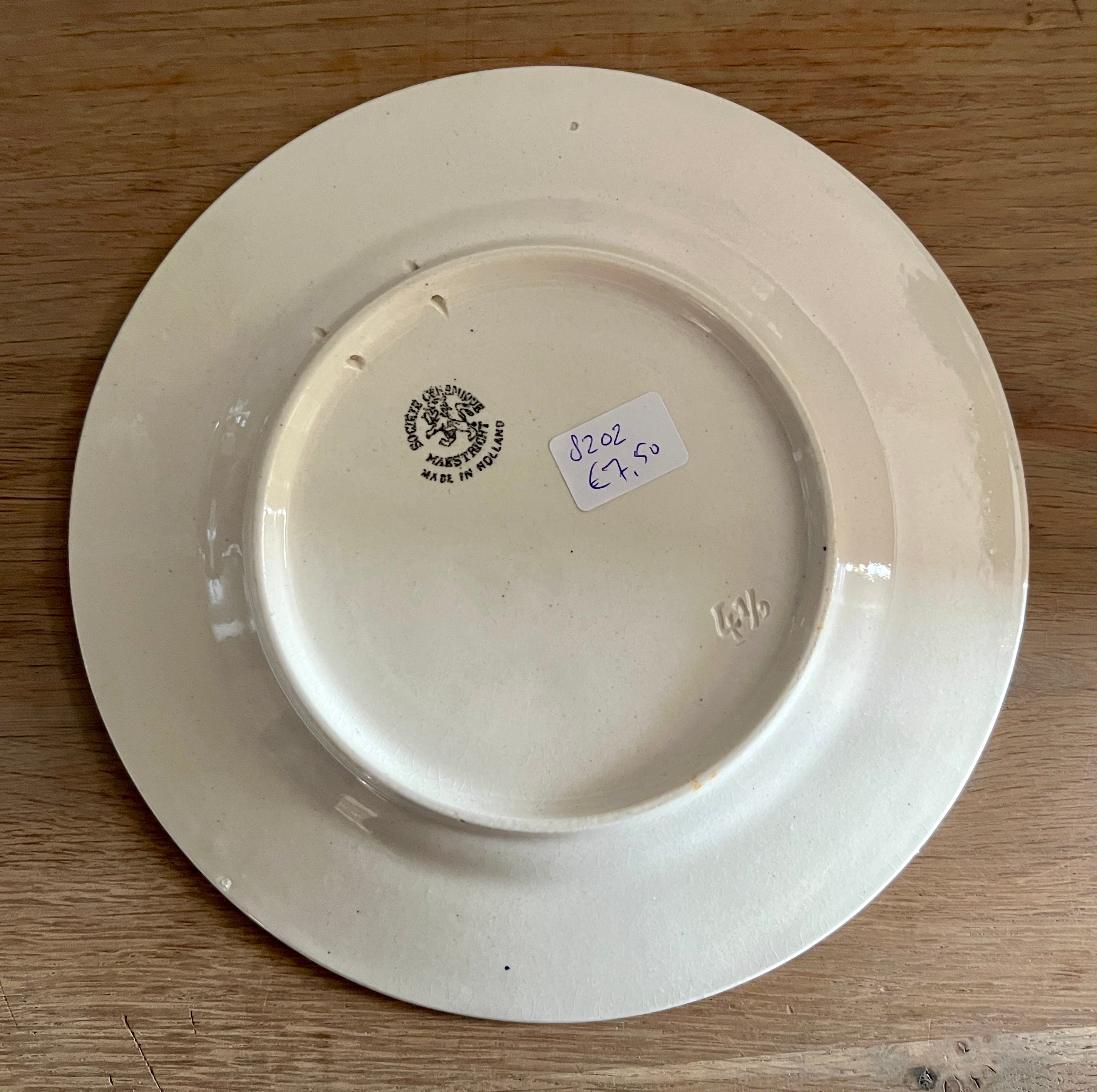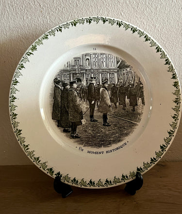 Sierbord / Dessertbord - Societe Ceramique Maestricht - décor met rand van groene bladeren en een opdruk met soldaten en de tekst "Un Moment Historique" - nr. 11