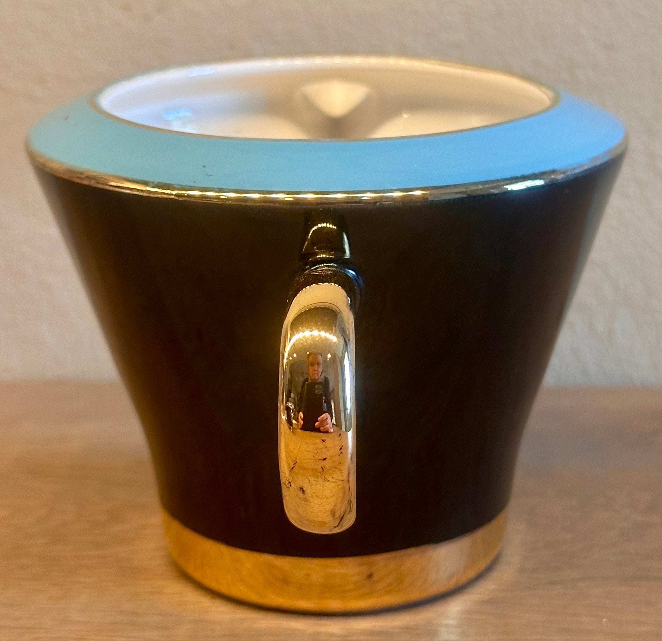 Melkkan - ongemerkt - uitgevoerd in zwart en azuurblauw met goudgekleurde biesjes