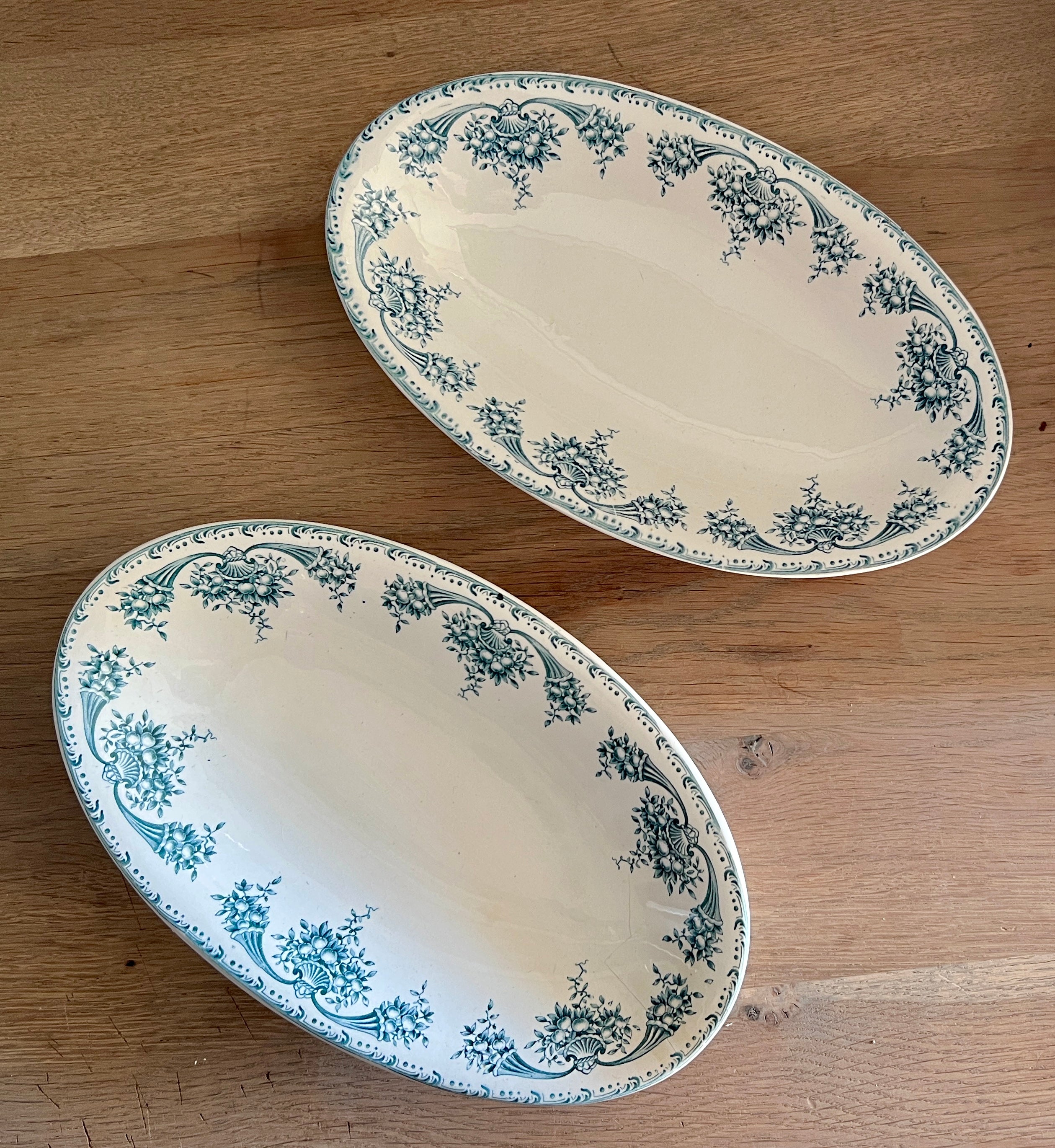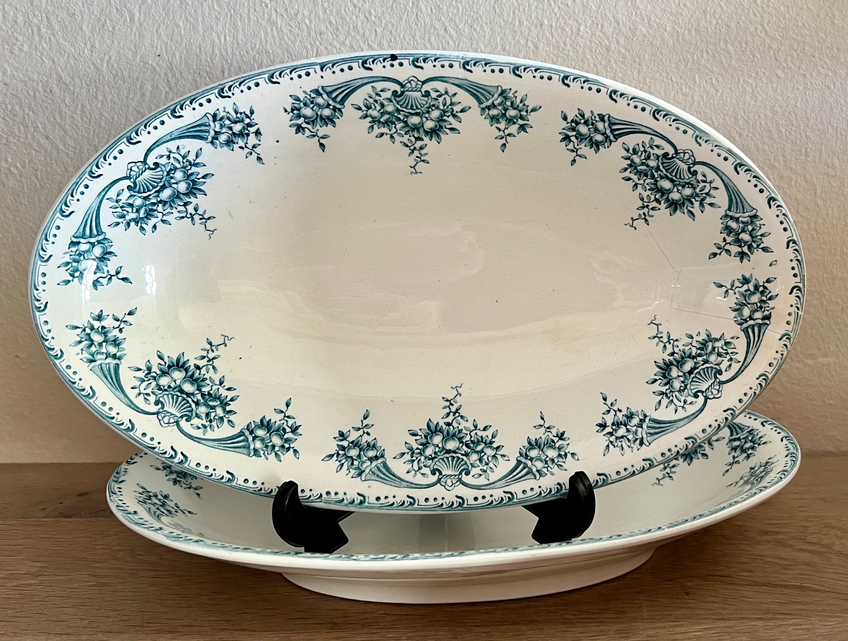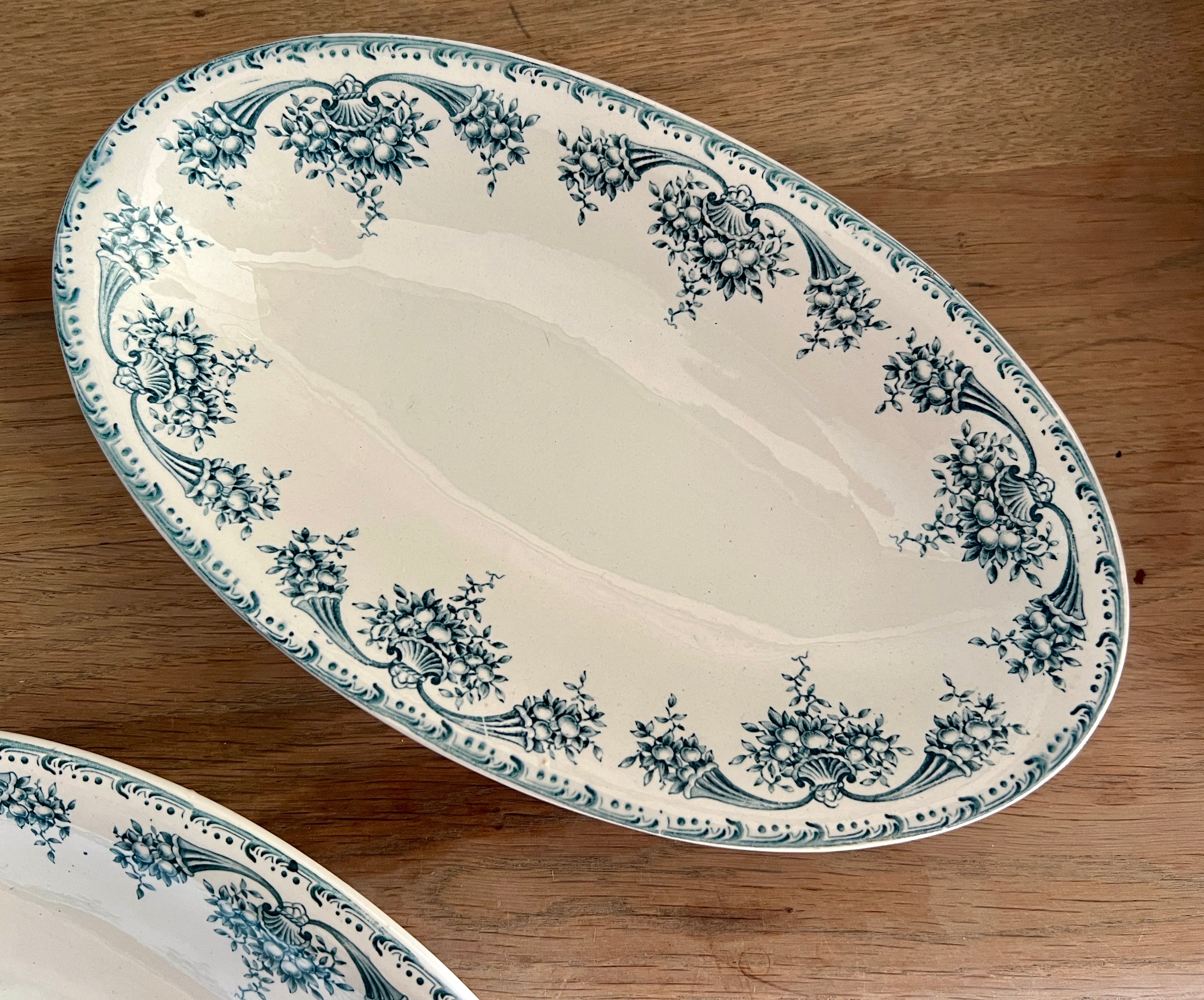 Ravier / Zuurschaal - Boch - décor FRUITS uitgevoerd in petrol - vorm ANGERS - gemaakt tussen 1880 en 1930