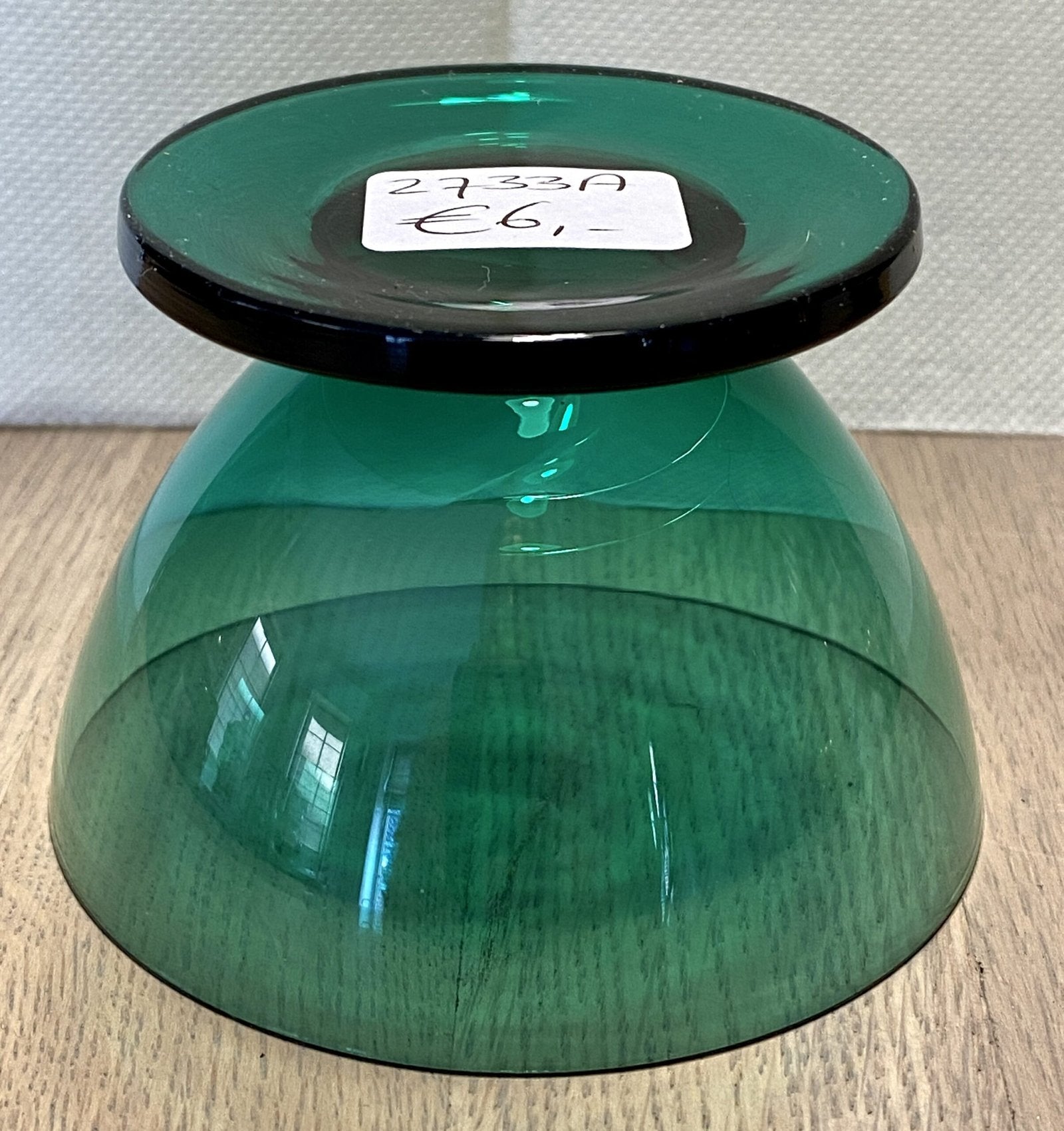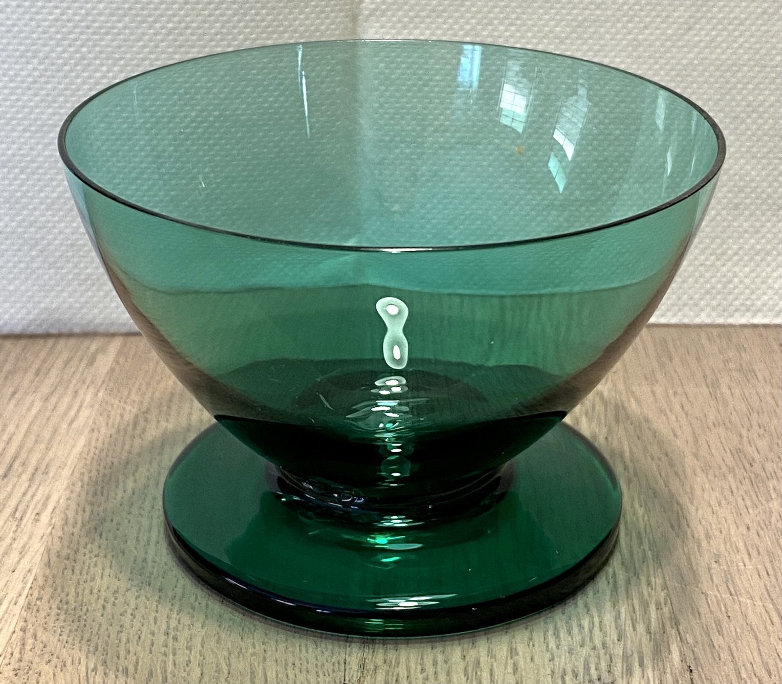 Vruchtencoupe - Kristal Unie Maastricht - Carnaval glas - model K1 - ontwerp Max Verboeket, ca. 1956 - smaragd (donkerder groen).